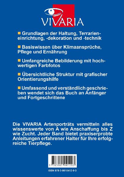 INHALTSVERZEICHNISFAMILIE & GATTUNG 7Die Familie Gekkonidae 7Die Gattung Gekko 8VERBREITUNG & LEBENSRAUM 10ANSCHAFFUNG 13Auswahl 13Transport 14Quarantäne und Eingewöhnung 15BESCHREIBUNG 17Allgemeine Morphologie 17Geschlechtsunterscheidung 20VERHALTEN 23VERGESELLSCHAFTUNG 25TERRARIUM 27EINRICHTUNG 28Rückwand 28Bodengrund 28Bepflanzung 29Dekoration 31TERRARIENTECHNIK 32Regelung der Temperatur 32Regelung der Feuchtigkeit 33Beleuchtung im Terrarium 34ERNÄHRUNG 37Nahrungsspektrum 37Ergänzungsfuttermittel 38PFLEGE 41Hygiene 41Greifen und Halten 41Krankheiten und Verletzungen 43ZUCHT 47Fortpflanzung 47Inkubation und Schlupf 48Aufzucht der Jungtiere 50ADRESSEN & ZEITSCHRIFTEN 53GLOSSAR 55LITERATURVERZEICHNIS 57STICHWORTVERZEICHNIS 59BILDQUELLENNACHWEIS 62DANKSAGUNG 62DER AUTOR 63