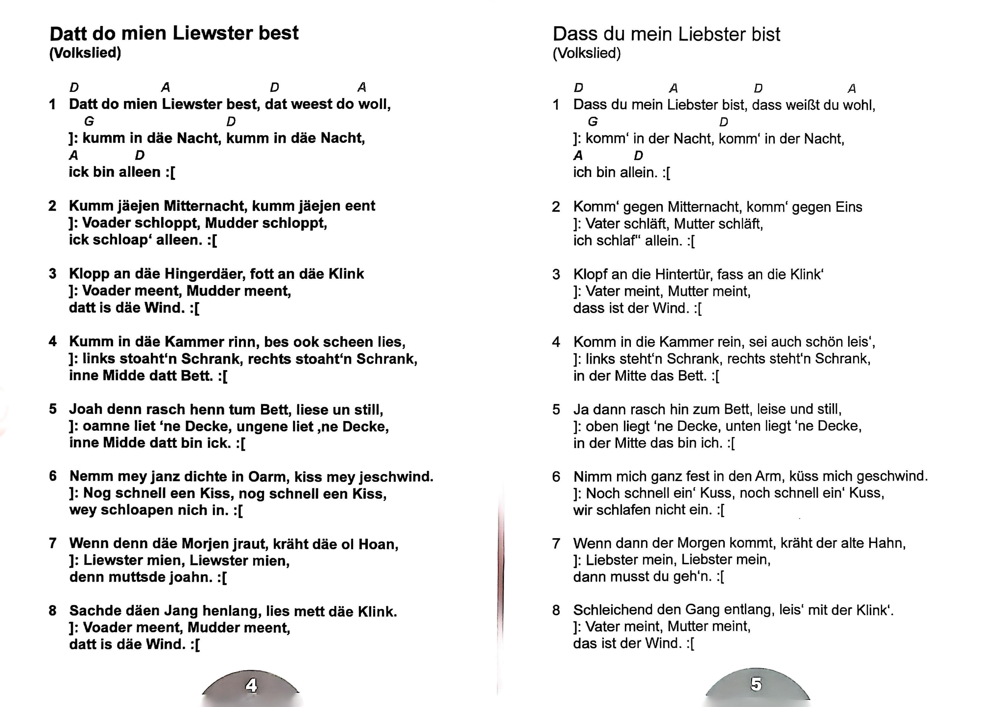 Liederheft mit zweisprachigen Liedtexten in Hoch- und Niederdeutsch, Flämingische Mundart mit Akkorden