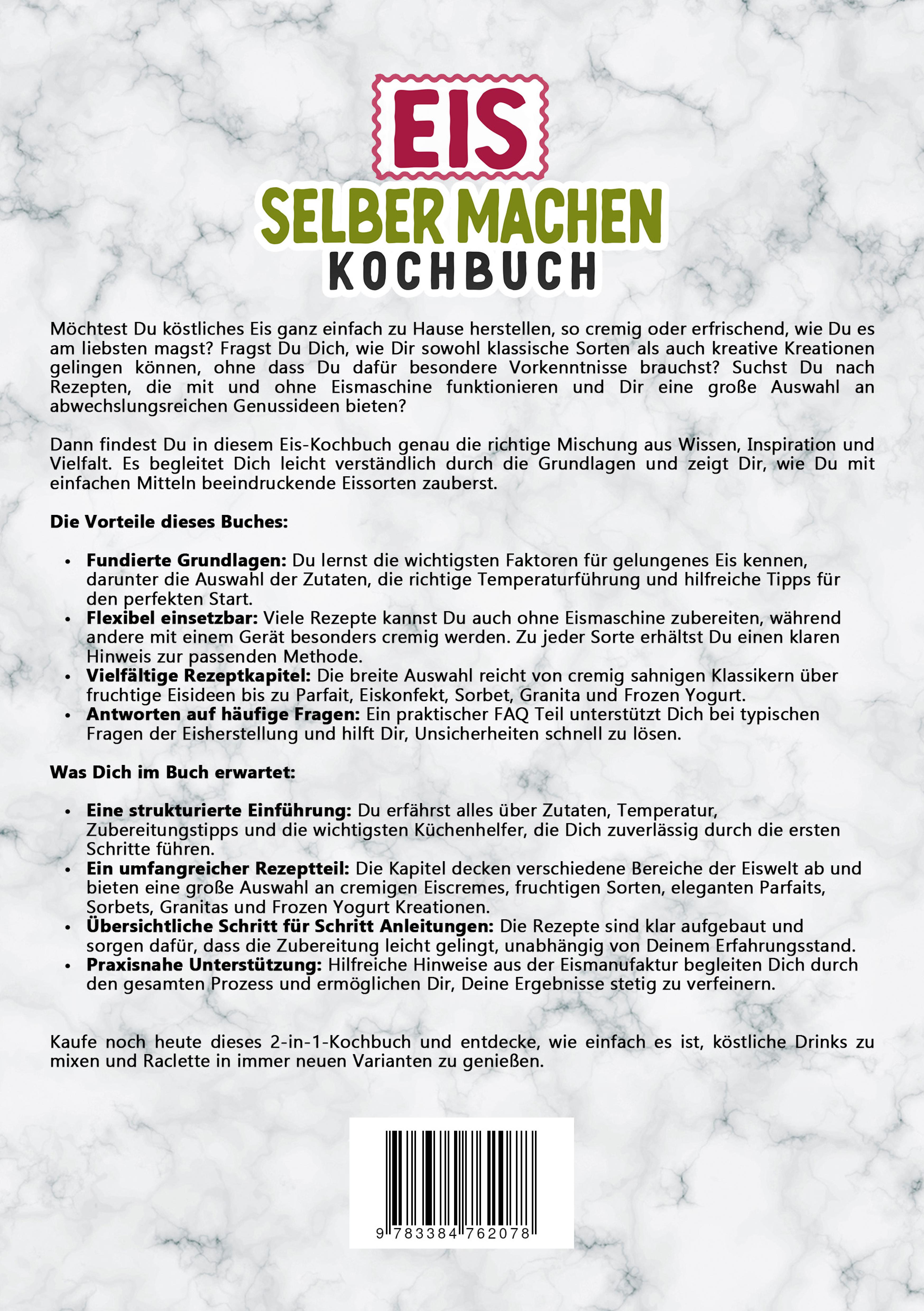 Möchtest Du köstliches Eis ganz einfach zu Hause herstellen, so cremig oder erfrischend, wie Du es am liebsten magst? Fragst Du Dich, wie Dir sowohl klassische Sorten als auch kreative Kreationen gelingen können, ohne dass Du dafür besondere Vorkenntnisse brauchst? Suchst Du nach Rezepten, die mit und ohne Eismaschine funktionieren und Dir eine große Auswahl an abwechslungsreichen Genussideen bieten?Dann findest Du in diesem Eis-Kochbuch genau die richtige Mischung aus Wissen, Inspiration und Vielfalt. Es begleitet Dich leicht verständlich durch die Grundlagen und zeigt Dir, wie Du mit einfachen Mitteln beeindruckende Eissorten zauberst.Die Vorteile dieses Buches:- Fundierte Grundlagen: Du lernst die wichtigsten Faktoren für gelungenes Eis kennen, darunter die Auswahl der Zutaten, die richtige Temperaturführung und hilfreiche Tipps für den perfekten Start.- Flexibel einsetzbar: Viele Rezepte kannst Du auch ohne Eismaschine zubereiten, während andere mit einem Gerät besonders cremig werden. Zu jeder Sorte erhältst Du einen klaren Hinweis zur passenden Methode.- Vielfältige Rezeptkapitel: Die breite Auswahl reicht von cremig sahnigen Klassikern über fruchtige Eisideen bis zu Parfait, Eiskonfekt, Sorbet, Granita und Frozen Yogurt.- Antworten auf häufige Fragen: Ein praktischer FAQ Teil unterstützt Dich bei typischen Fragen der Eisherstellung und hilft Dir, Unsicherheiten schnell zu lösen.Was Dich im Buch erwartet:- Eine strukturierte Einführung: Du erfährst alles über Zutaten, Temperatur, Zubereitungstipps und die wichtigsten Küchenhelfer, die Dich zuverlässig durch die ersten Schritte führen.- Ein umfangreicher Rezeptteil: Die Kapitel decken verschiedene Bereiche der Eiswelt ab und bieten eine große Auswahl an cremigen Eiscremes, fruchtigen Sorten, eleganten Parfaits, Sorbets, Granitas und Frozen Yogurt Kreationen.- Übersichtliche Schritt für Schritt Anleitungen: Die Rezepte sind klar aufgebaut und sorgen dafür, dass die Zubereitung leicht gelingt, unabhängig von Deinem Erfahrungsstand.- Praxisnahe Unterstützung: Hilfreiche Hinweise aus der Eismanufaktur begleiten Dich durch den gesamten Prozess und ermöglichen Dir, Deine Ergebnisse stetig zu verfeinern.Kaufe noch heute dieses Eis-Kochbuch und entdecke, wie viel Freude es bereitet, Eis ganz nach Deinem Geschmack herzustellen, kreativ, vielseitig und voller Genuss.