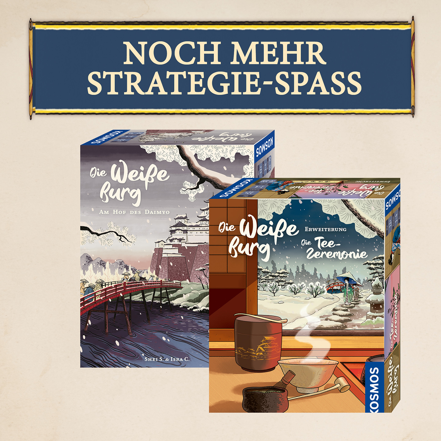 Das Duell zum beliebten Strategiespiel! Im Schatten der Burg Himeji liegen zwei Familien im Wettstreit um Ansehen und Einfluss. Das taktische Spielgefühl der raffinierten Kettenzüge des Basisspiels wird hier mit einem cleveren neuen Mechanismus umgesetzt: Statt Würfel werden zunächst Spielsteine an Gärten, Übungsplätzen und auf der Burg eingesetzt. Mit der neuen Handels-Aktion des großen Spiels kommt eine weitere Wahlmöglichkeit hinzu. In der zweiten Spielhälfte werden die Steine dann taktisch zurückgenommen. Wer triumphiert im Zwei-Personen-Spiel ab zwölf Jahren um das größte Ansehen auf der Burg Himeji?