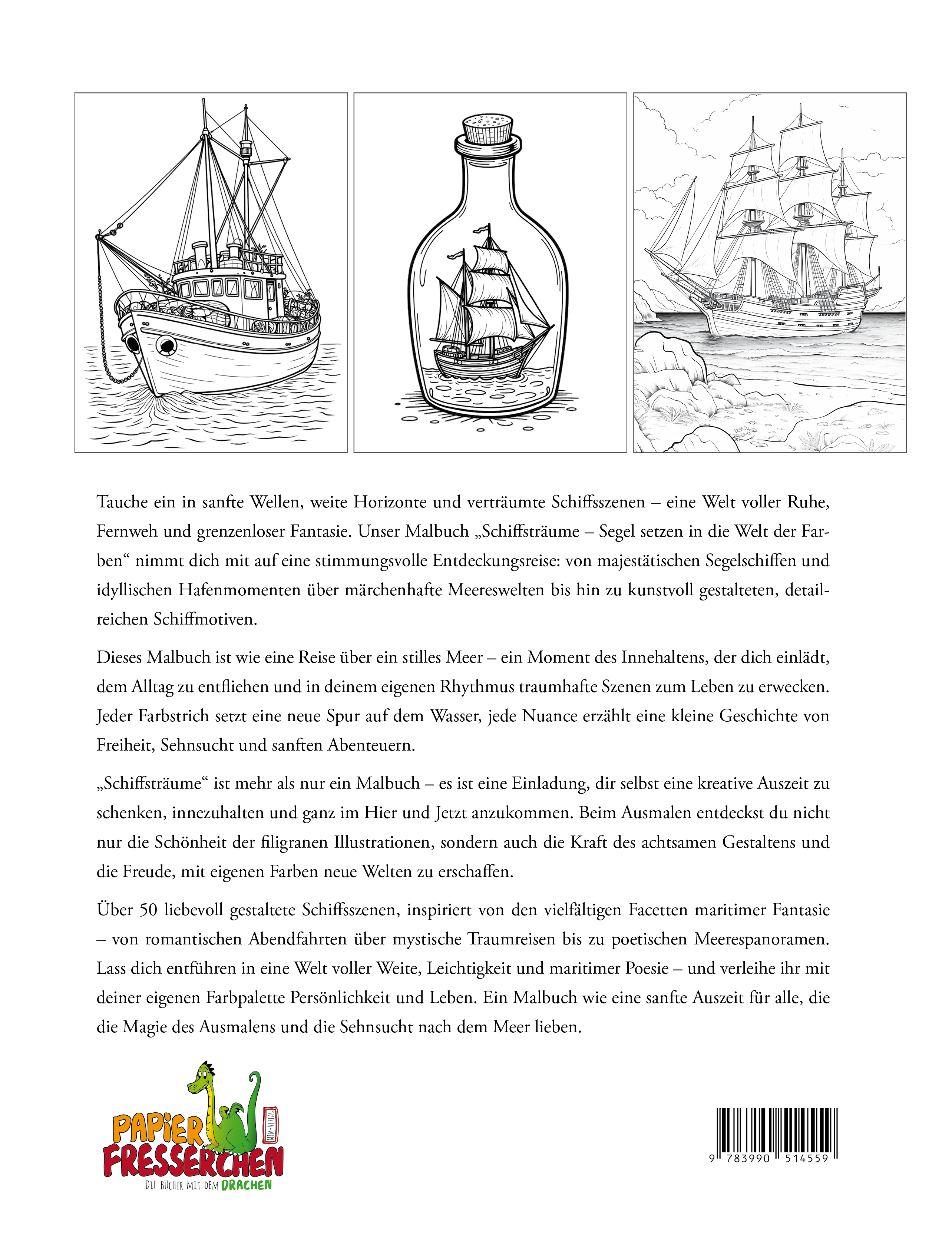 „Schiffsträume“ ist mehr als nur ein Malbuch – es ist eine Einladung, dir selbst eine kreative Auszeit zu schenken, innezuhalten und ganz im Hier und Jetzt anzukommen. Beim Ausmalen entdeckst du nicht nur die Schönheit der filigranen Illustrationen, sondern auch die Kraft des achtsamen Gestaltens und die Freude, mit eigenen Farben neue Welten zu erschaffen.