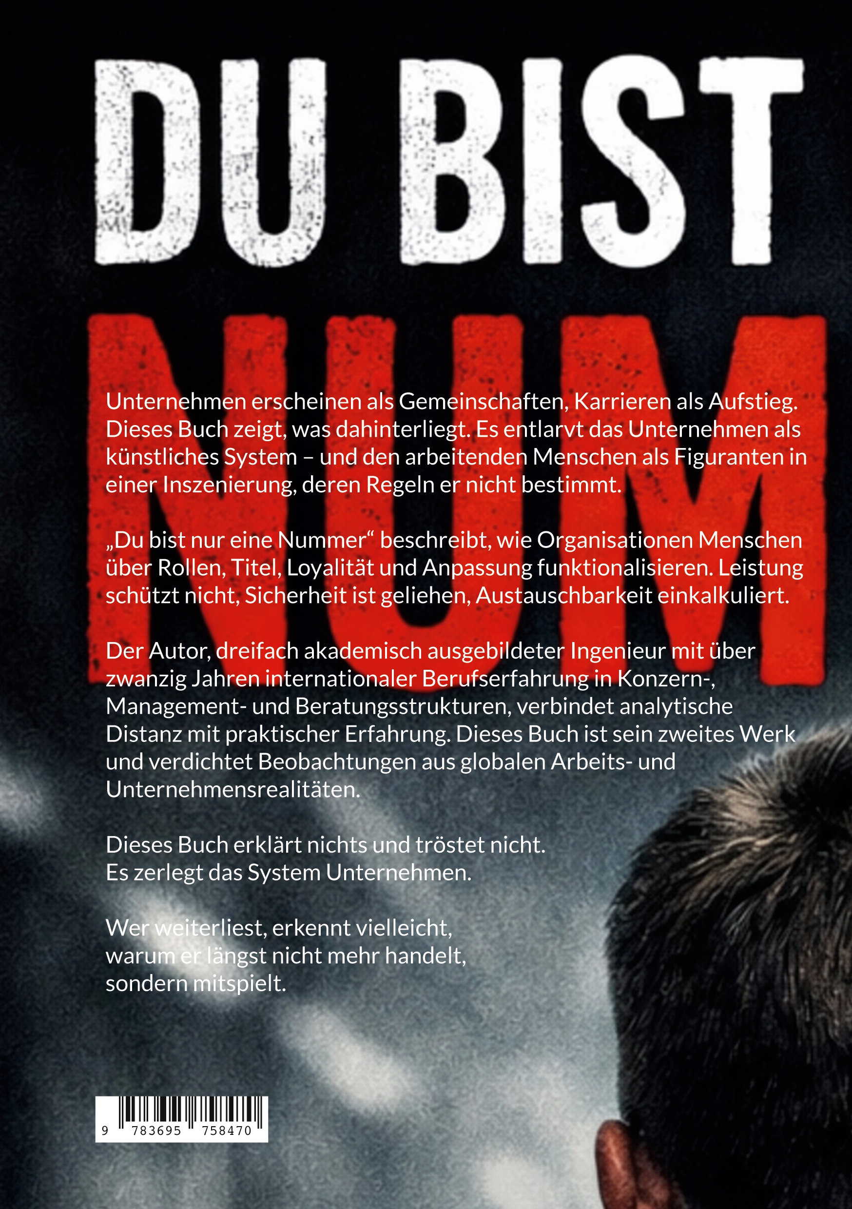 Der Fokus liegt nicht auf individuellen Fehlverhalten, sondern auf der Logik des Systems Unternehmen selbst. Ohne Ratgeberton oder Lösungsversprechen fordert das Buch dazu auf, Arbeit, Zeit und Karriere neu zu betrachten und gängige Illusionen über Sicherheit, Aufstieg und Zugehörigkeit kritisch zu hinterfragen.
