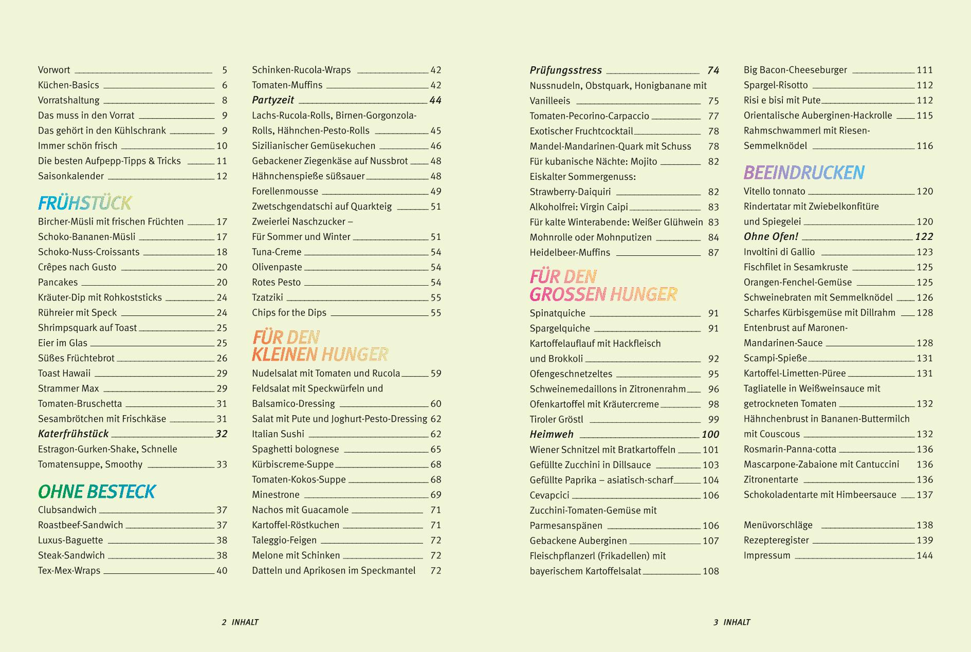 Kochen Studenten anders? Und wenn ja, wie? Eine Umfrage der GU-Redaktion an der Uni München hat ergeben: Studenten wünschen sich schnelle Gerichte, einfache Gerichte, Gerichte mit wenigen und günstigen Zutaten und eine Vielfalt an Geschmacksrichtungen, aber dann darf es auch doch mal was Besonderes sein. Das neue Studenten-Kochbuch von GU nimmt sich genau dieser Punkte an und führt durch den Studenten-Alltag. Vom Frühstück über Gerichte für den kleinen und großen Hunger, Leckeres und Gesundes zum Mitnehmen gibt es auch Rezepte, mit denen Kochen mit Freunden sicher gelingt oder der Besuch der Eltern kulinarisch gemeistert werden kann. Spezielle Seiten mit Themen wie z.B. Katerfrühstück, Partyzeit, Brainfood oder Muttis Beste sorgen mit Augenzwinkern für Unterhaltung und liefern das passende Rezept dazu. Und die vielen Rezepte in jedem Kapitel nehmen ernst, was Realität ist: mit wenig Geld am Monatsende dennoch gut schlemmen.