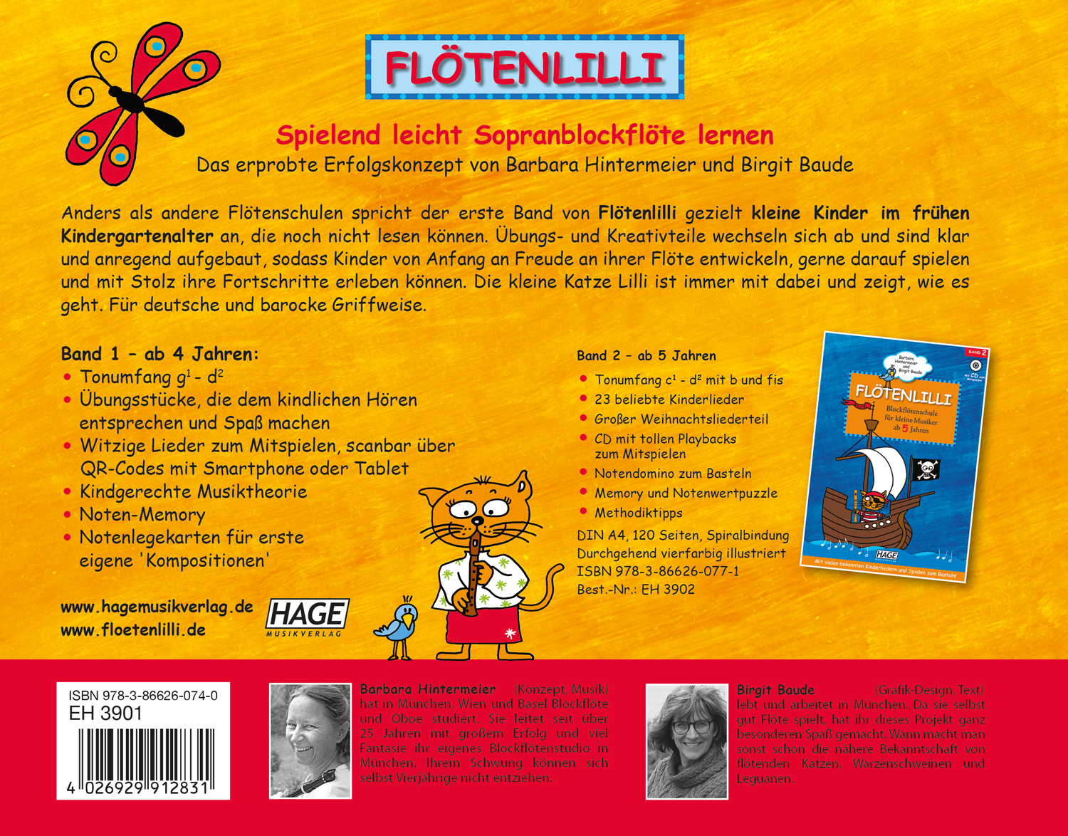 Spielend leicht Sopranblockflöte lernenDas erprobte Erfolgskonzept von Barbara Hintermeier und Birgit BaudeAnders als andere Flötenschulen spricht der erste Band von Flötenlilli gezielt kleine Kinder im frühen Kindergartenalter an, die noch nicht lesen können. Übungs- und Kreativteile wechseln sich ab und sind klar und anregend aufgebaut, sodass Kinder von Anfang an Freude an ihrer Flöte entwickeln, gerne darauf spielen und mit Stolz ihre Fortschritte erleben können. Die kleine Katze Lilli ist immer mit dabei und zeigt, wie es geht. Für deutsche und barocke Griffweise.Band 1 - ab 4 Jahren:- Tonumfang g1 - d2- Übungsstücke, die dem kindlichen Hören entsprechen und Spaß machen- Witzige Lieder zum Mitspielen, scanbar über QR-Codes mit Smartphone oder Tablet- Kindgerechte Musiktheorie- Noten-Memory- Notenlegekarten für erste eigene 'Kompositionen'