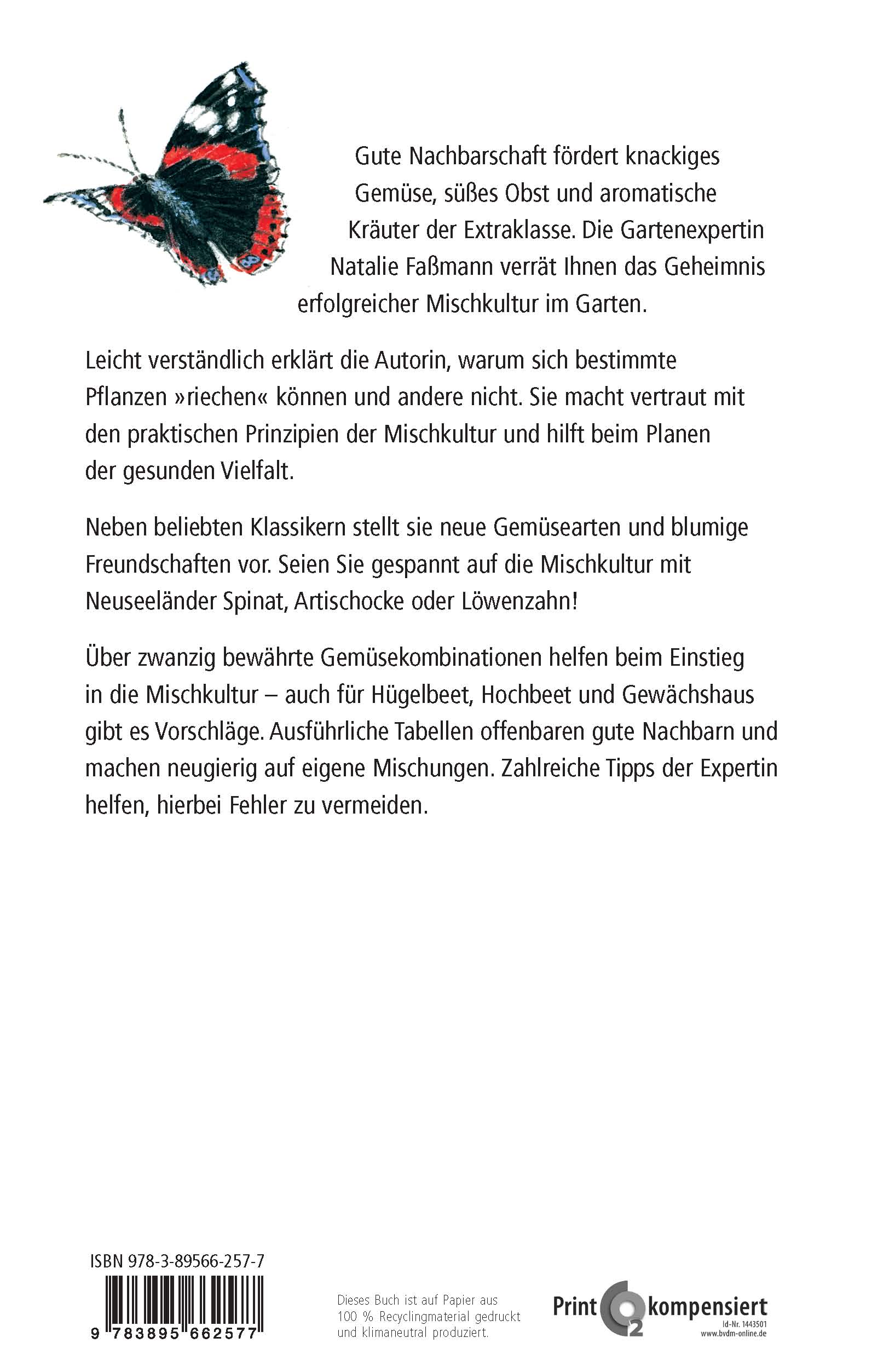 Erstmals stellt dieses Buch neben bewährten Pflanzen auch die Mischkultur mit neuen Gemüsearten und blumige Freundschaften vor. Experimentierfreudige Gärtner dürfen gespannt sein auf die Mischkultur mit Aubergine, Amarant, Erdbeerspinat, Artischocke, asiatischen Salaten, Okra oder Wassermelone.