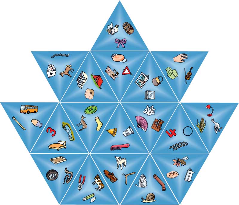 Die SCHUBITRIX-Spiele erweitern den Wortschatz und üben das richtige Anwenden von Adjektiven, Verben und Nomen. Wenn die dreieckigen Spielkarten so zusammenfügt werden, dass die beiden Wörter der aneinander liegenden Seiten zusammenpassen, entsteht eine symmetrische Lösungsfigur. Mit „SCHUBITRIX Deutsch“ erweitern die Kinder ihren Wortschatz und gewinnen mehr Sicherheit im Ausdruck – das kommt ihnen bei vielen Aufgaben im Sprachbereich zugute, zum Beispiel beim Formulieren eigener Texte.