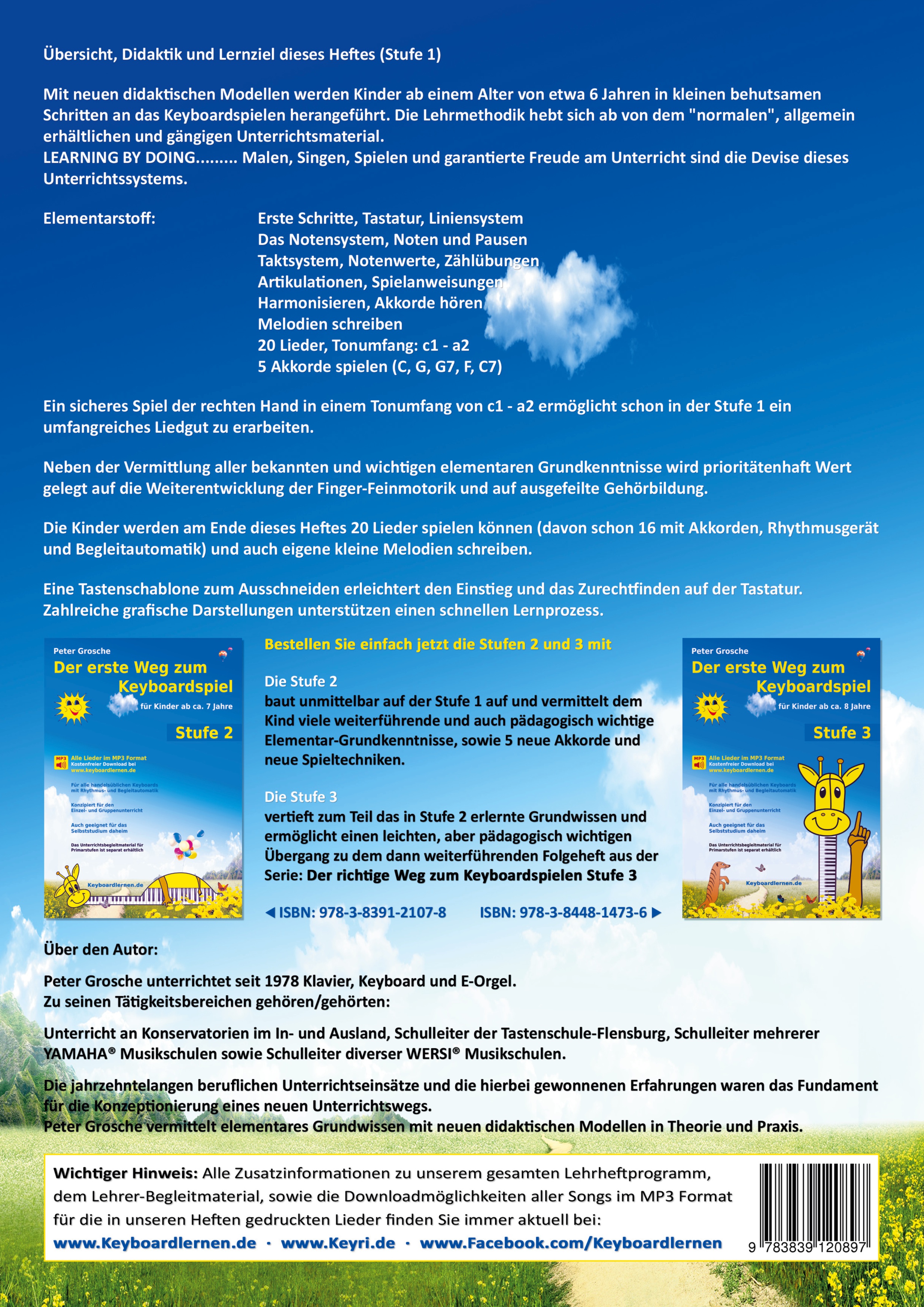 Peter Grosche unterrichtet seit 1978 Klavier, Keyboard und E-Orgel. Zu seinen Tätigkeitsbereichen gehören/gehörten: - Unterricht an Konservatorien im In- und Ausland - Schulleiter der Tastenschule-Flensburg - Schulleiter mehrerer YAMAHA® Musikschulen - Schulleiter diverser WERSI® Musikschulen Die jahrzehntelangen beruflichen Unterrichtseinsätze und die hierbei gewonnenen Erfahrungen waren das Fundament für die Konzeptionierung eines neuen Unterrichtswegs. Peter Grosche vermittelt elementares Grundwissen mit neuen didaktischen Modellen in Theorie und Praxis. Weitere Informationen über den Autor erhalten Sie bei: www.PeterGrosche.de und www.Klavierlernen24.de + www.Keyboardlernen.de