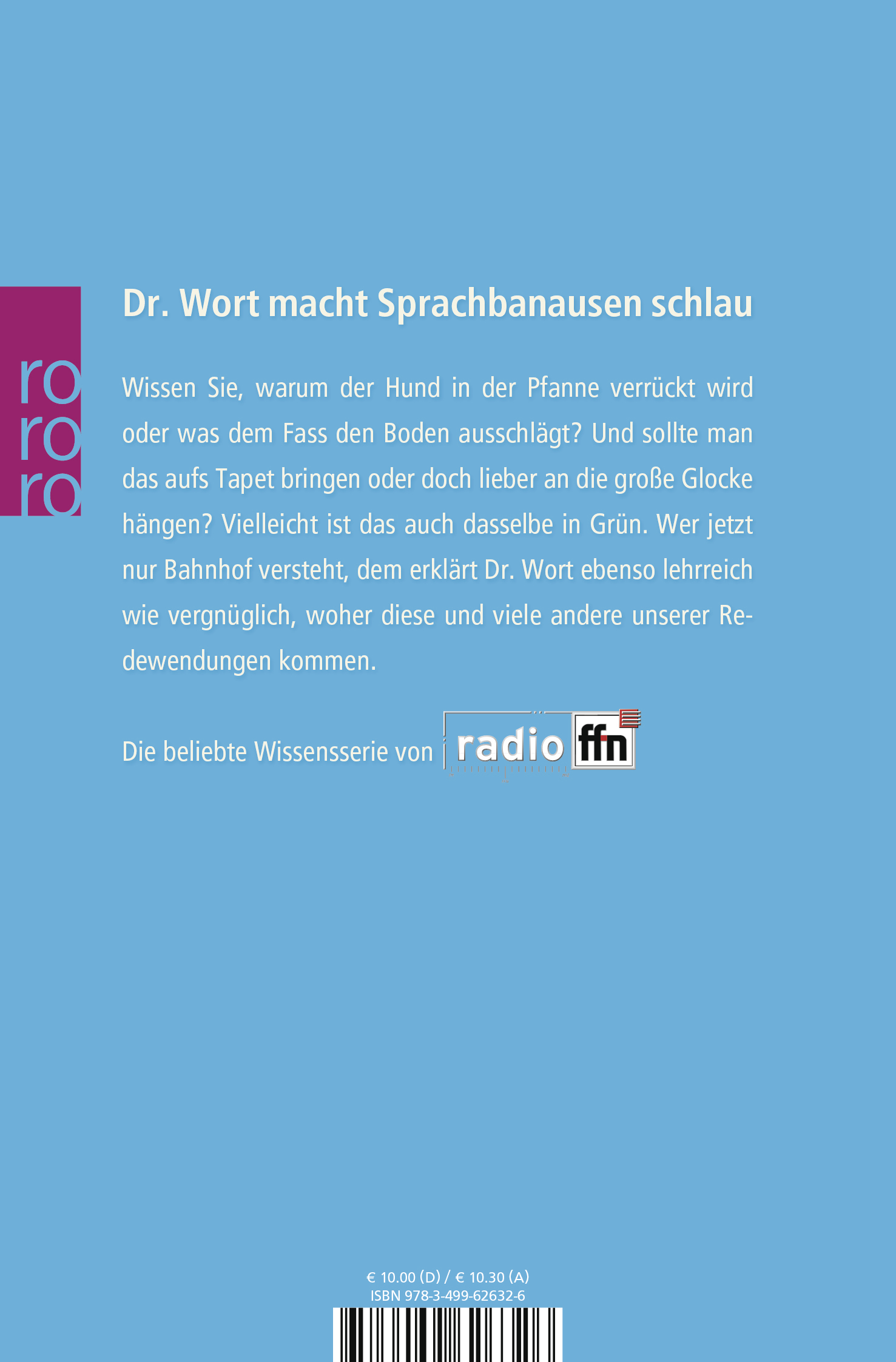 Wissen Sie, warum der Hund in der Pfanne verrückt wird oder was dem Fass den Boden ausschlägt? Und sollte man das aufs Tapet bringen oder doch lieber an die große Glocke hängen? Vielleicht ist das auch dasselbe in Grün. Wer jetzt nur Bahnhof versteht, dem erklärt Dr. Wort ebenso lehrreich wie vergnüglich, woher diese und viele andere unserer Redewendungen kommen.