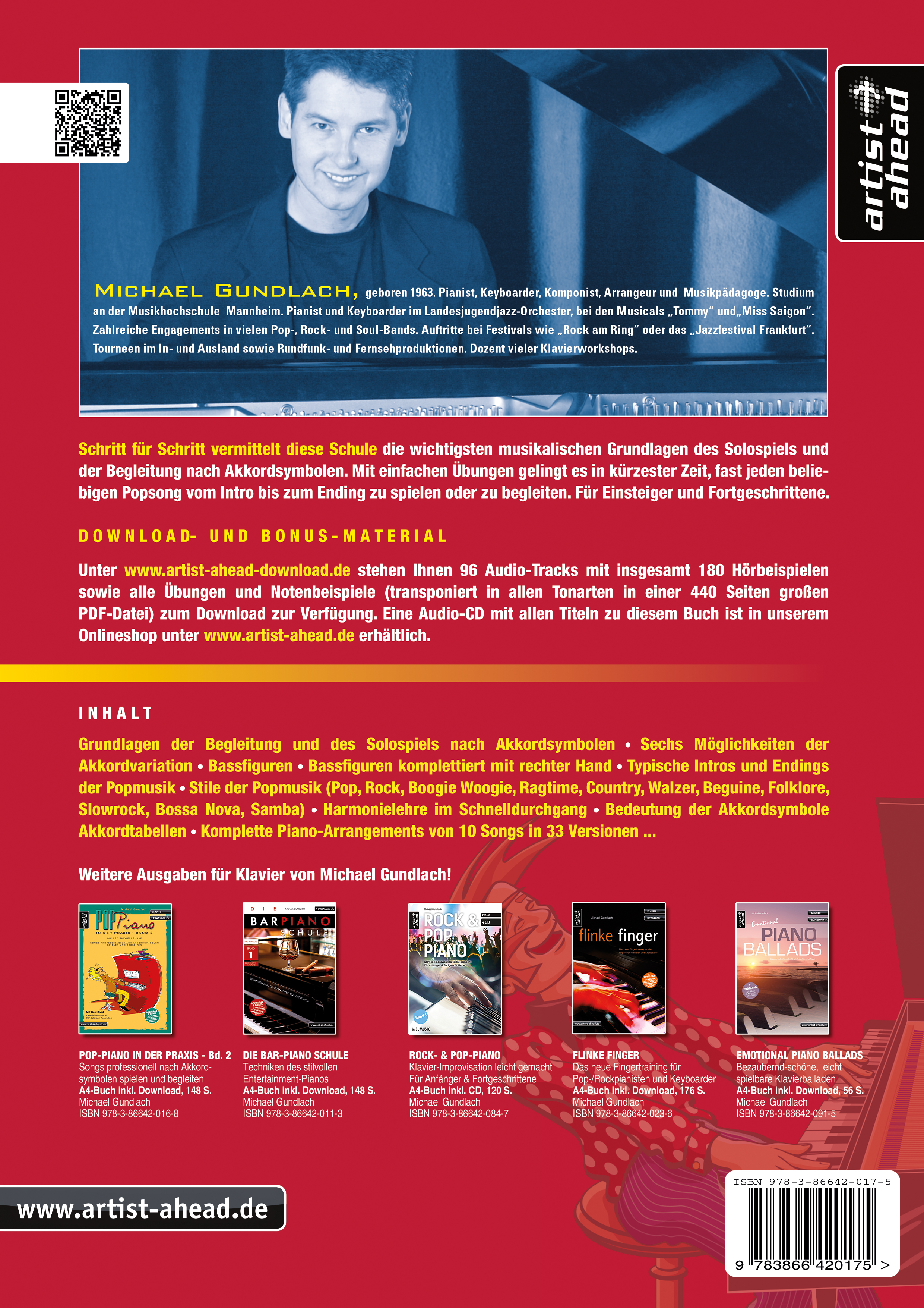 Michael Gundlachs Pop Piano in der Praxis Band 1 aus dem Artist Ahead Verlag schafft kompetente Abhilfe. Die Grundregeln, die wichtigsten Stilrichtungen des Pop-Piano, typische Intros und Endings und vieles mehr sind in Michael Gundlachs Pop Piano in der Praxis Band 1 aus dem Ahead Verlag mit zahlreichen Hörbeispielen enthalten.