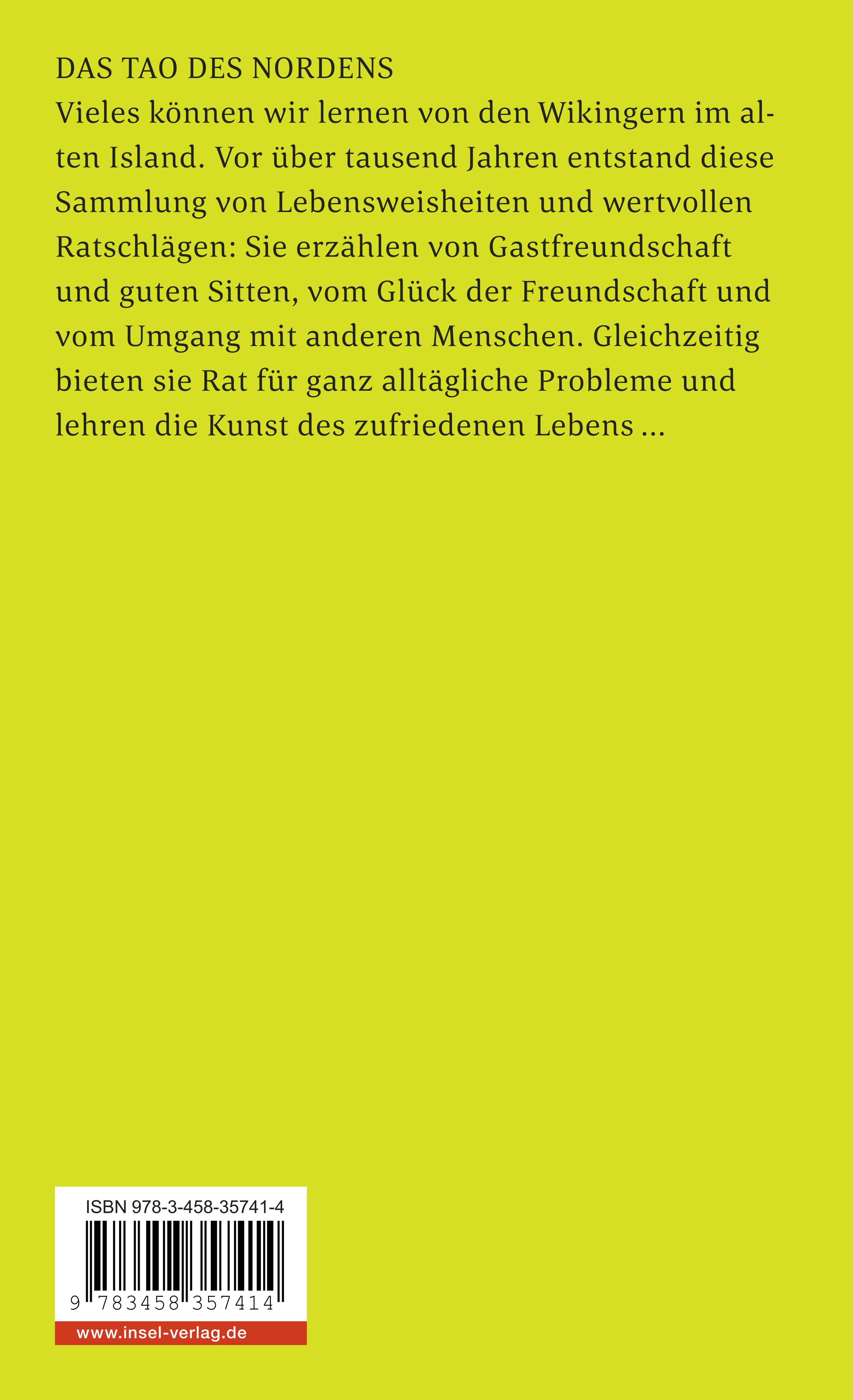 Vieles können wir lernen von den als wild und grausam geltenden Seefahrern. Auf ihren langen Fahrten ins Unbekannte, über unerforschte Meere auf der Suche nach neuen Ländern entstand diese Sammlung von Lebensweisheiten und wertvollen Ratschlägen. Sie vermitteln uns auf wunderbare Weise die Lebensanschauung der Wikinger. Sie erzählen von Gastfreundschaft und guten Sitten, aber auch von Vertrauen und dem Mut, Entscheidungen zu treffen. Und sie bieten Rat für alltägliche Probleme, auf die schon diese wilden Männer im Umgang mit ihren Zeitgenossen gestoßen sind.