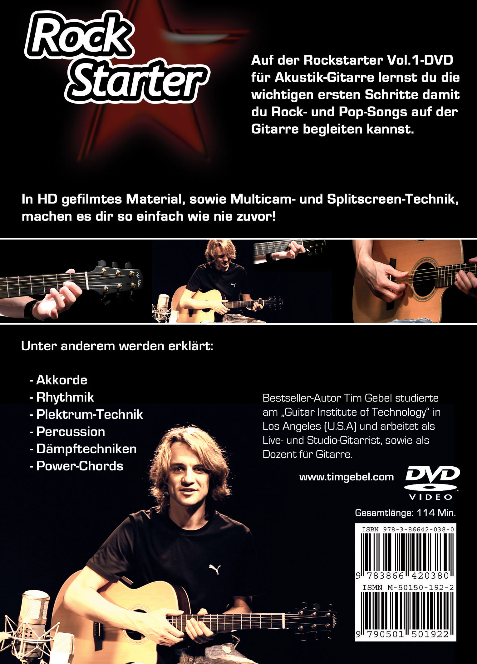 Auf der Rockstarter Vol. 1-DVD für Akustikgitarre lernst du die wichtigen ersten Schritte, damit du Rock- und Pop-Songs auf der Gitarre begleiten kannst. Themen wie Akkorde, Rhythmik, Plektrum-Technik, Percussion, Dämpftechniken und Power-Chords werden ausführlich behandelt. In HD gefilmtes Material, sowie Multicam- und Splitscreen-Technik machen es dir so einfach wie nie zuvor! Die perfekte Lehr-DVD um erfolgreich und mit einer Menge Spaß dein Lieblingsinstrument zu erlernen!