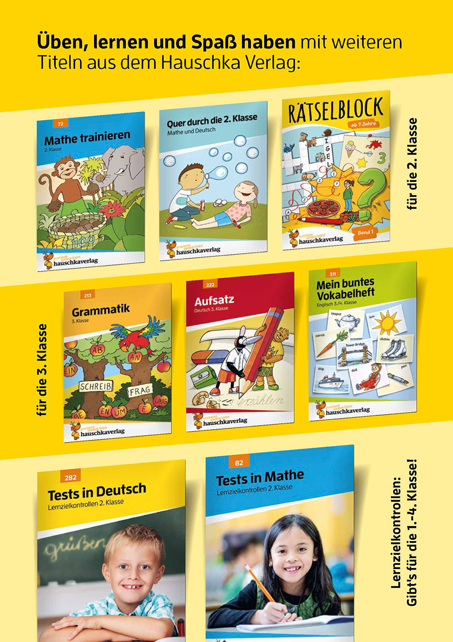 Die Hauschka-Redaktion arbeitet seit Jahrzehnten daran, Kinder mit Freude zum eigenständigen Lernen zu befähigen. Auch dieses Heft ist intuitiv verständlich, kindgerecht konzeptioniert, mit zahlreichen Schulkindern getestet und optimiert. Sie werden es selbst erleben: Ihr Kind wird Spaß beim Lernen haben.