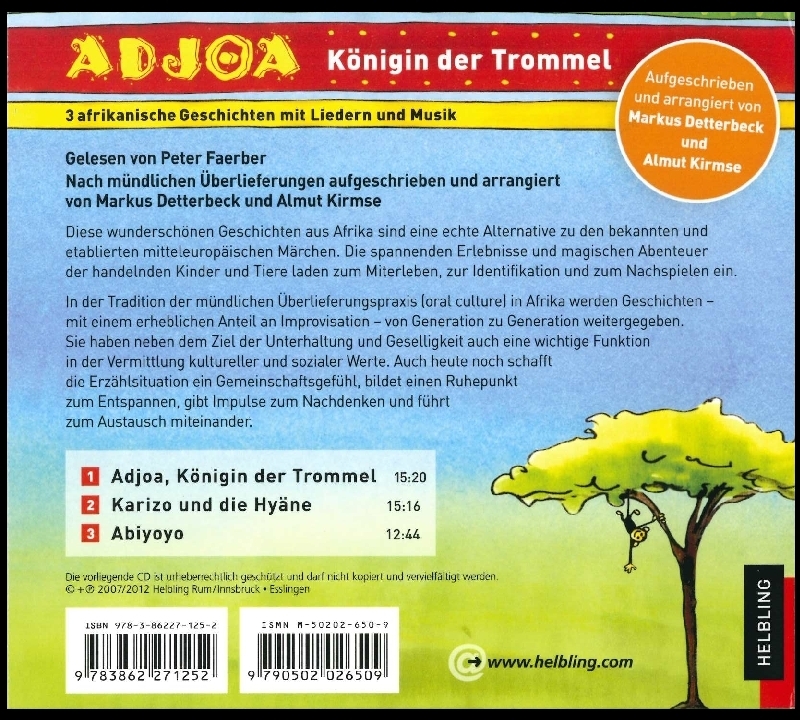 | Schlagworte | Afrika • Afrika, Literatur; Märchensammlungen • Hörbuch; Märchen/Sagen • Kinderlieder • Märchen |