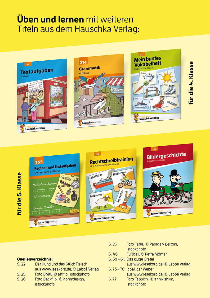 | Schlagworte | 274 • 4 fälle deutsch • 4. Klasse • 4. Schuljahr • 978-3-88100-274-5 • 978388100-274-5 • 978388100274-5 • 9783881002745 • Arbeits-heft • Arbeitsheft • Besser lesen Hauschka • Besser lesen Hauschka Verlag • Buchstaben • Deutsch • Deutsch-Aufgaben • deutsch-heft • Deutschtraining • Deutsch; Übungen (Grundschule) • Ferien-Heft • flüssiger lesen • Freiarbeit • Geschichten • Grammatik • Grundschule • Grund-Schule • Hauschka • Hauschka 274 • Hauschka Deutsch • Hauschka Deutsch 4. Klasse • Hauschka Lesen • Hauschka Verlag • Hauschka Verlag 274 • hauschka verlag deutsch • Hauschka Verlag Deutsch 4. Klasse • Hauschka Verlag Lesen • herausnehmbarer Lösungsteil • Hilfsmittel • Kreuzwort-Rätsel • Lehrmittel • Lernen • Lernen & Nachschlagen • Lernhilfen • Lern-Material • Lernmaterialien • Lern-Spiel • Lesebuch • Lesefertigkeit • Leseförderung • Leseheft • lesehilfe kinder • Lesekompetenz • Lesen • Lesenlernen; Übungen • Lesen trainieren • Lesen üben • Leseprobe • Lesetexte • Lesetraining • Leseübung • Leseübungen • Leseverständnis • Lies mal • Märchen • mit Lese-Probe • mit Lösungen • Nachschlagen • Primarstufe • Schneller lesen • Schulbücher • Schulbücher & Lernhilfen • Schule • Schule und Lernen • Schule, Unterricht & Lernhilfen • Schul-heft • Selbstlernheft • Selbst-Lernheft • Sinnentnehmendes Lesen • sinngestaltenden Lesen • Test • Übertritt • Übungsheft • Unterricht • Urkunde zum Ausmalen als Belohnung • Vierte Klasse • vokale und konsonanten • Volksschule • Vorbereitung Gymnasium • Witze • Wortarten |