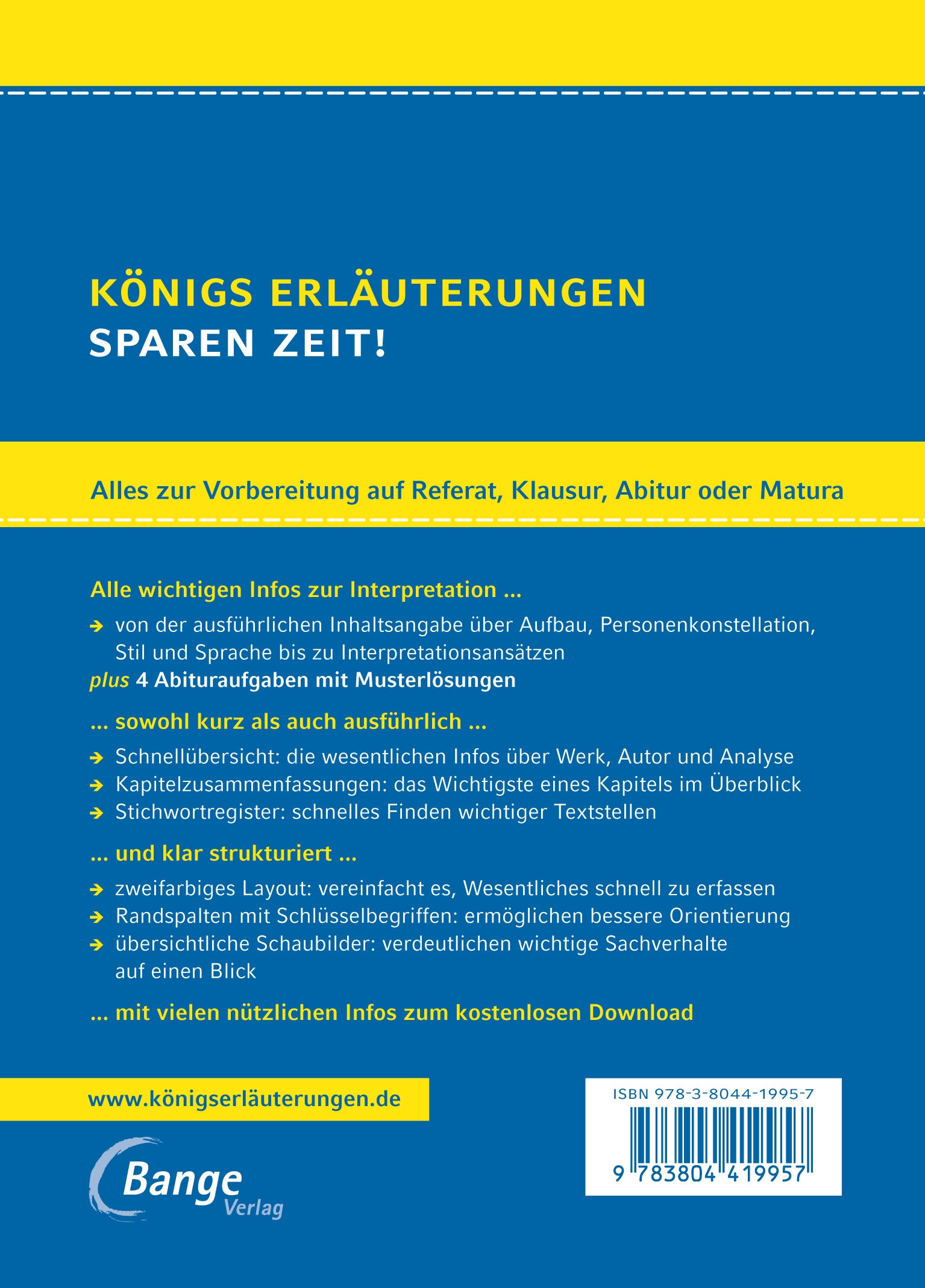 In diesem Band findest du alles, was du zur Vorbereitung auf Referat, Klausur, Abitur oder Matura benötigst ohne das Buch komplett gelesen zu haben.