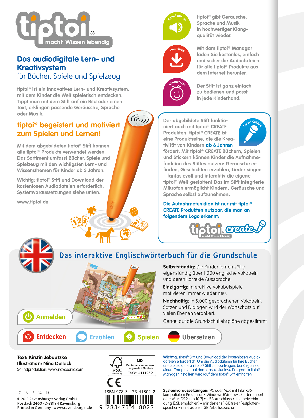tiptoi-Stift nicht enthalten. Muss separat erworben werden.