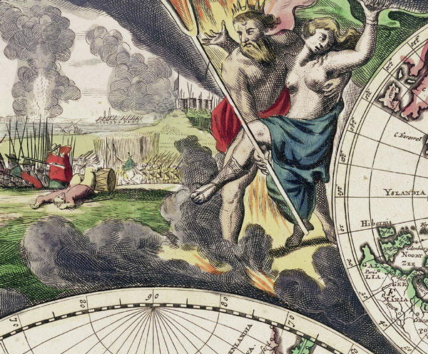 Farbenprächtiger Nachdruck, Lieferung gerollt, Blattgröße (B x H) 71 x 58 cm, Bedrucktes Blatt (B x H) 64 x 54 cm. Origilalmaßstab ca. 1:100 000 000- aber die Darstellung um 15 % vergrößert zum Original. Kartograph: Justus Danckert.