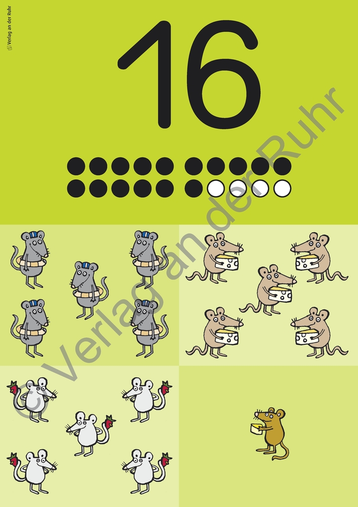 Ziffern- und entsprechende Mengenerfassung einfach und anschaulich. Hier ist keine Vorarbeit mehr nötig - die liebevoll illustrierten Zahlen-Bildkarten sind sofort einsetzbar. Die A4-großen stabilen Pappkarten zeigen neben der eigentlichen Zahl auch das passende Mengenbild - jeweils in Fünferanordnung - sowie die entsprechende Darstellung im 20er-Feld. So ist die Zahl in den unterschiedlichen Darstellungsweisen für die Kinder immer präsent.