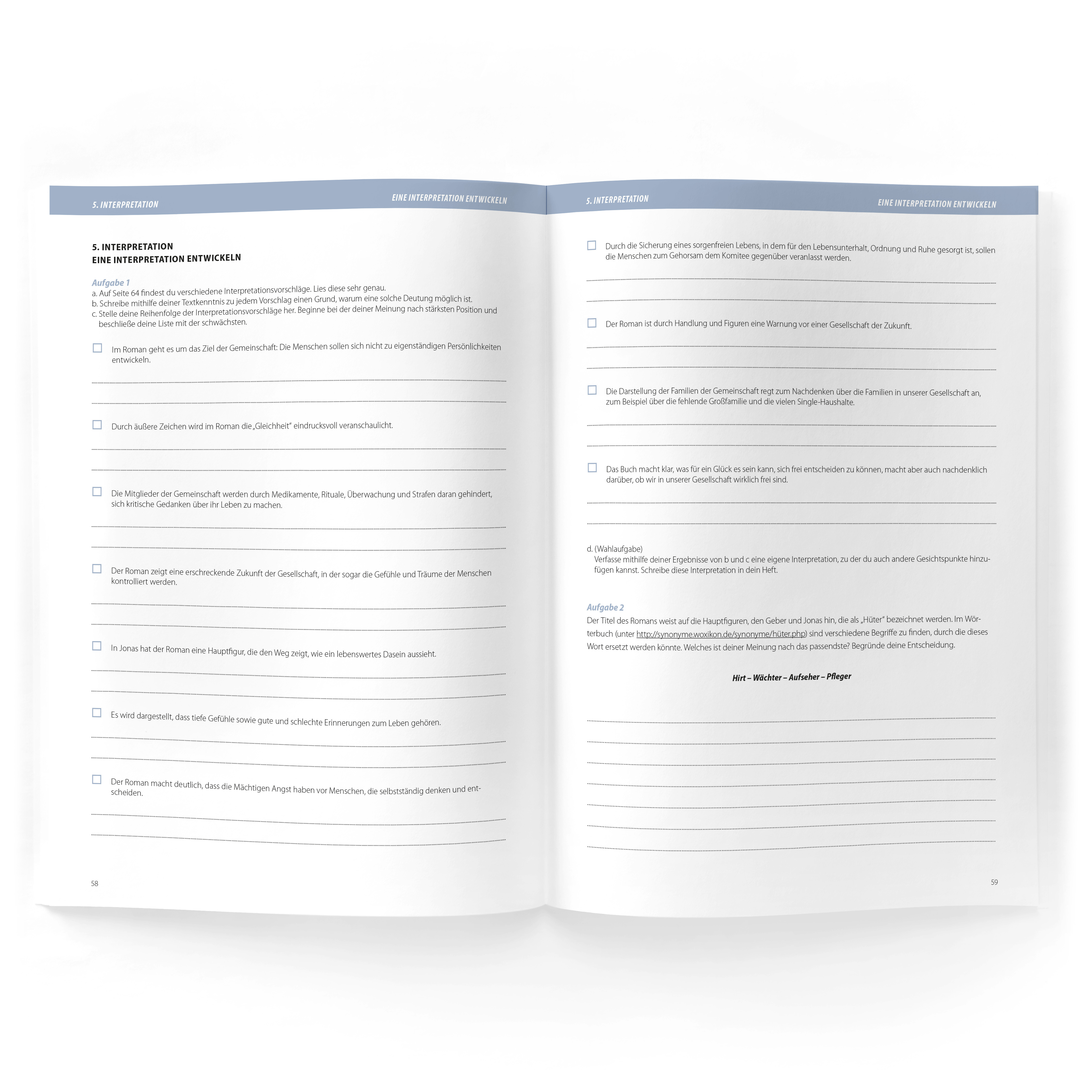 Ausbruch aus dem System Jonas lebt in einer scheinbar sorglosen Welt ohne Not, Schmerz und Risiko. Alles ist perfekt kommunistisch organisiert, sogar die Berufe werden zugeteilt. Als er mit zwölf Jahren Nachfolger des »Hüters der Erinnerung« werden soll, beginnt er eine Ausbildung beim alten Hüter. Dort erfährt er, welch hohen Preis sie alle für dieses scheinbar problemlose Leben zu zahlen haben und entscheidet sich für die lebensgefährliche Flucht. Der Roman mit einem solchen Vorbild-Protagonisten eignet sich in besonderem Maße als Schullektüre. Das Schülerheft enthält - Inhaltsanalyse - Aufgaben zur Inhaltsvertiefung (Lückentext, Multiple Choice ...) - Gestaltungsaufgaben - Gegensatz Gemeinschaft und Hüter - Schutz und Kontrolle/Sicherheit und Fremdbestimmung - Textmerkmale (Schrift, Mehrdeutigkeit, Rückblicke, Erzähler, Science-Fiction ...) - Interpretieren und kritisieren