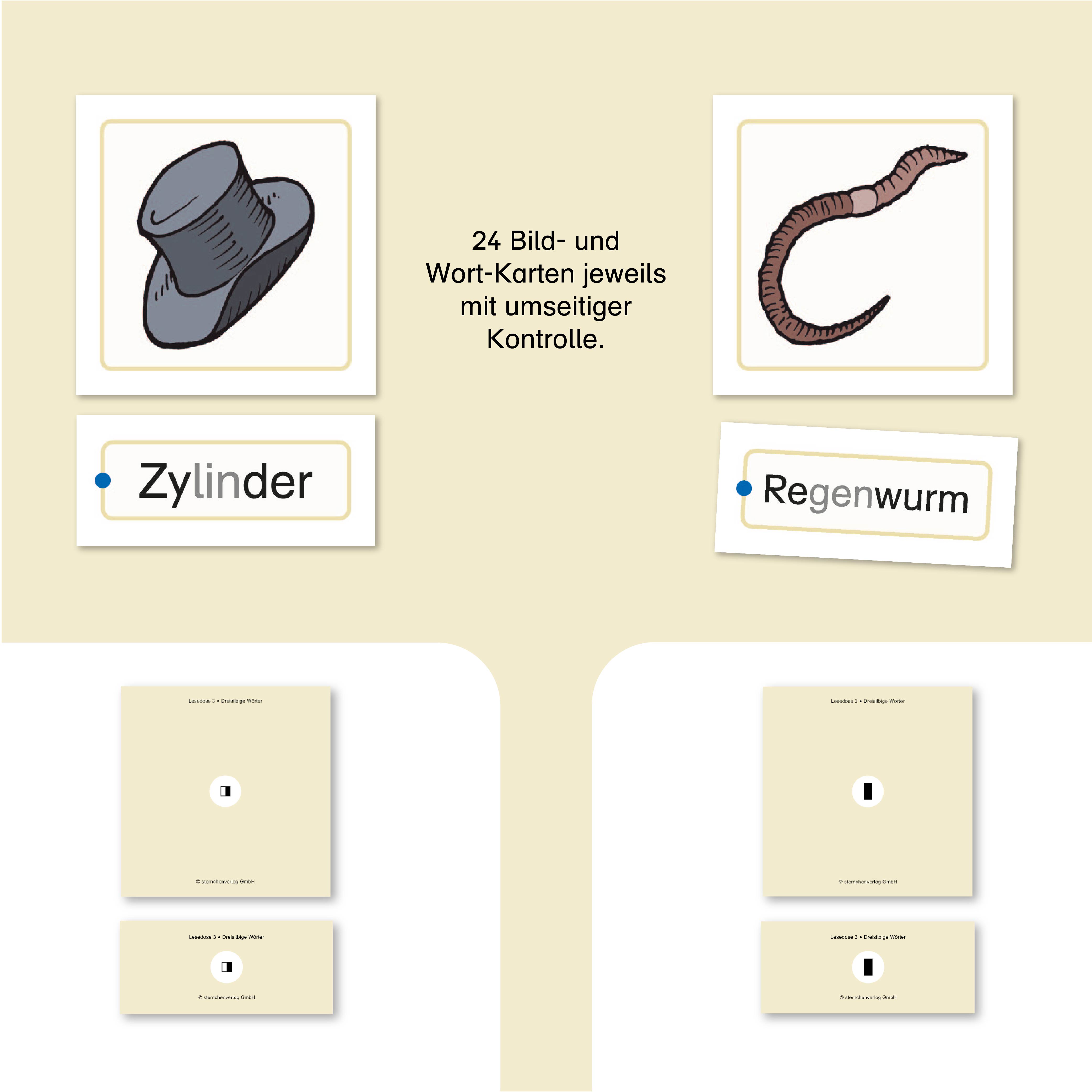 24 Bild-Wort-Karten in Sprechsilben mit Selbstkontrolle in der Box
