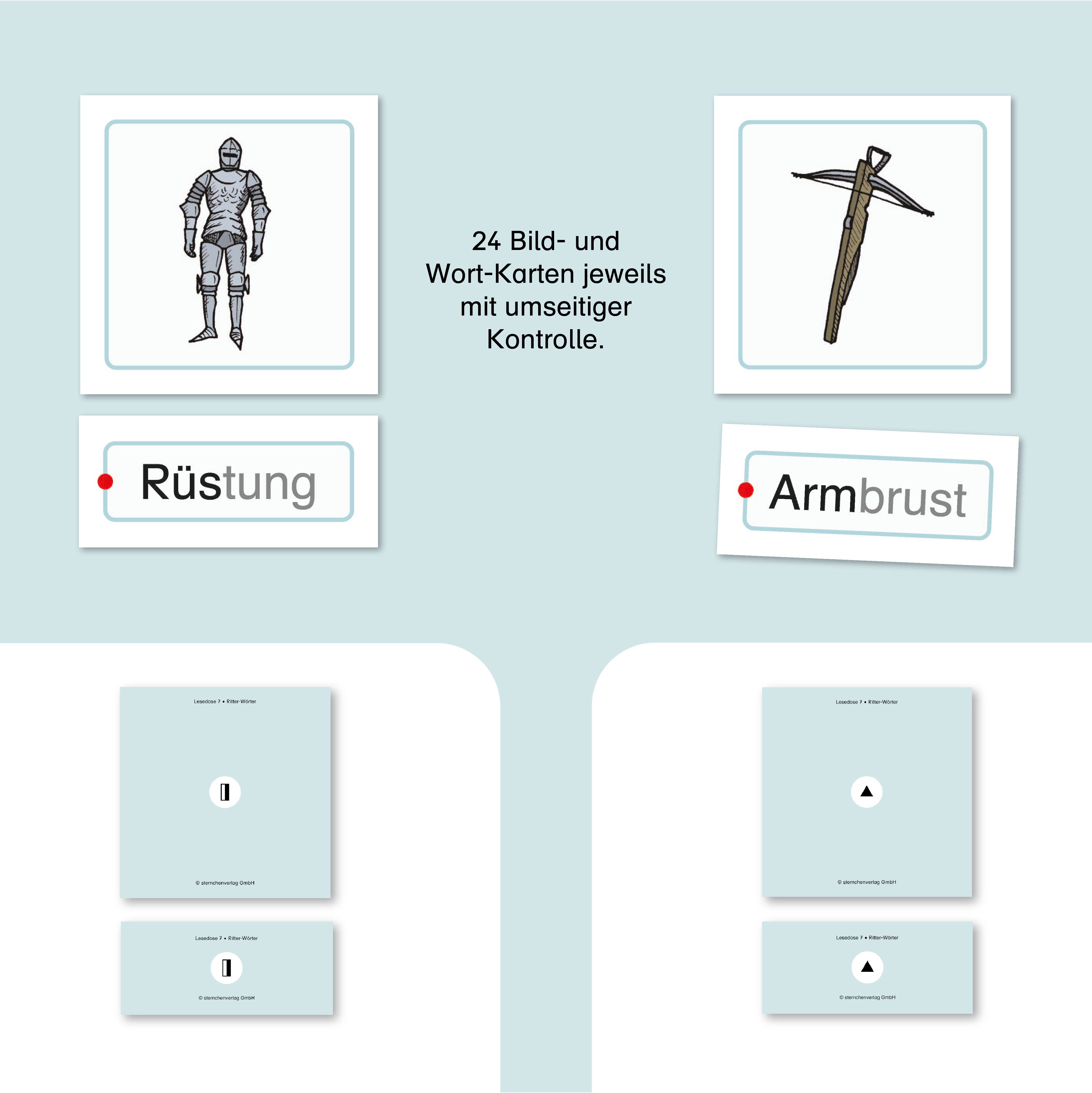 Jeweils 24 Bild-Wort-Karten in Sprechsilben mit Selbstkontrolle in der Box