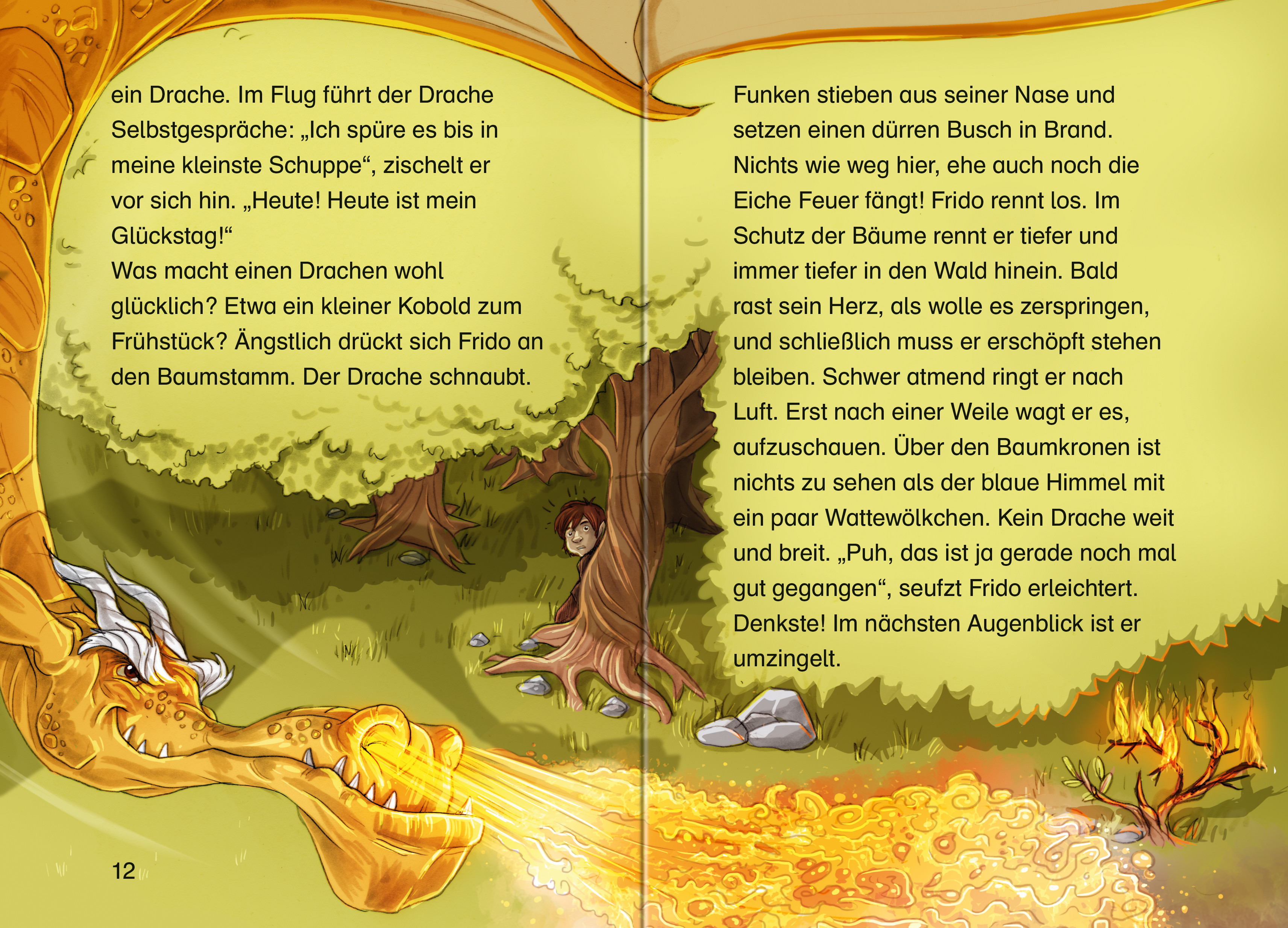Kobold Frido erhält einen Auftrag von einer guten Fee: Noch vor Sonnenaufgang soll er Zauberer Brandur ein Amulett überbringen, um ihn vor drohendem Unheil zu bewahren. Unterwegs trifft Frido auf die Elfe Alva und den Drachen Goldschnuppe, die ihm helfen wollen. Werden sie Brandur rechtzeitig erreichen und ihn retten?