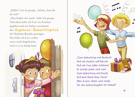 Als Ungeheuerjunge Freddie von seiner Mitschülerin Nathalie-Rosalie zum Geburtstag eingeladen wird, ist er ganz aus dem Häuschen. Aber was schenkt man bloß einem Menschenmädchen? Zum Glück weiß Freddies große Schwester Herbert Rat: Menschenmädchen mögen Puppen. Also bringt Freddie eine ungeheuerlich schöne Puppe mit zur Geburtstagsparty. Komisch nur, dass Nathalie-Rosalie sich gar nicht so richtig darüber freut ...