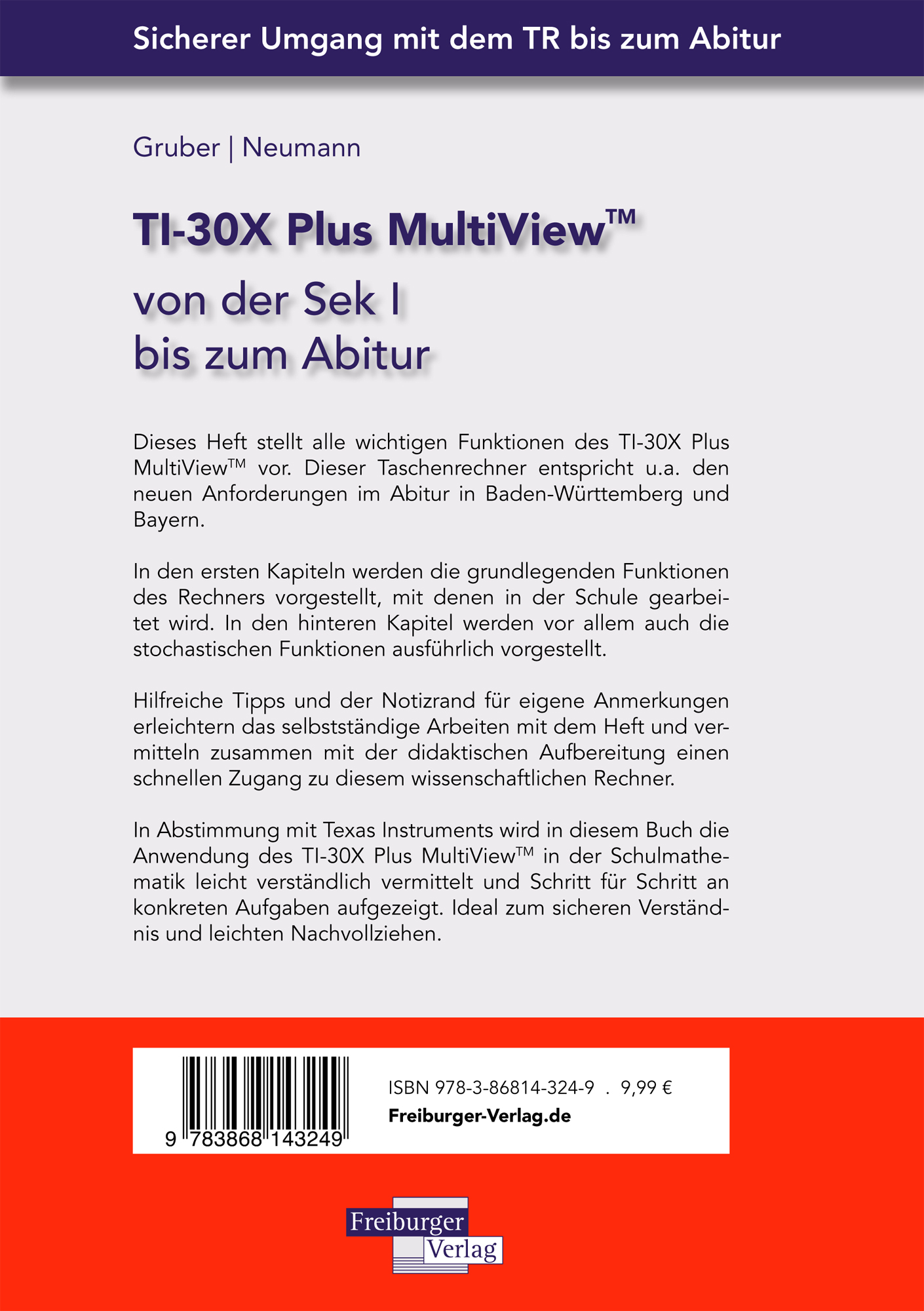 | Schlagworte | Abiturwissen; Mathematik • Mathematik • Mathematik; Prüfungsvorbereitungen (Abitur) • Taschenrechner • Texas Instruments-Taschenrechner • TI-30X Plus MultiView |
