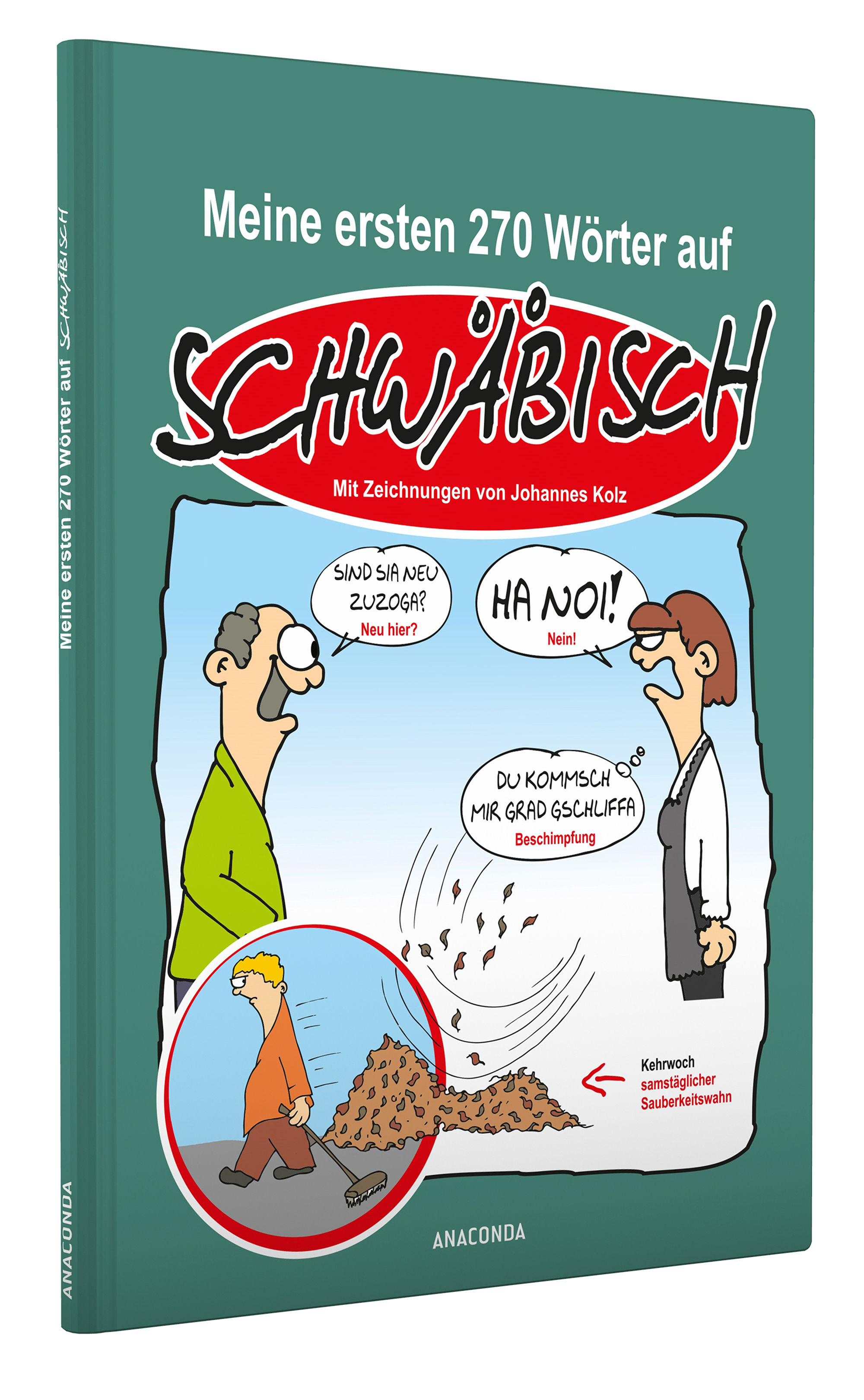Schwäbisch schwäddza will gelernt sein, doch mit diesem Bildwörterbuch ist Mordsgaude garantiert! Jedenfalls wird an frechen Sprüchen nicht gespart. Und die ersten 270 Wörter präsentieren Kolz und Zender mit viel Humor und witzigen Zeichnungen. Auch wichtigen kulinarischen Köstlichkeiten wie Herrgoddsbescheißerla oder Schbäddzla begegnen wir und wir lernen so manches über den Schwob und seine Gewohnheiten. Dann wissen wir auch, warum unsere Sprachkünste nicht immer gleich bejubelt werden: Denn net gmotzt isch globt gnug.