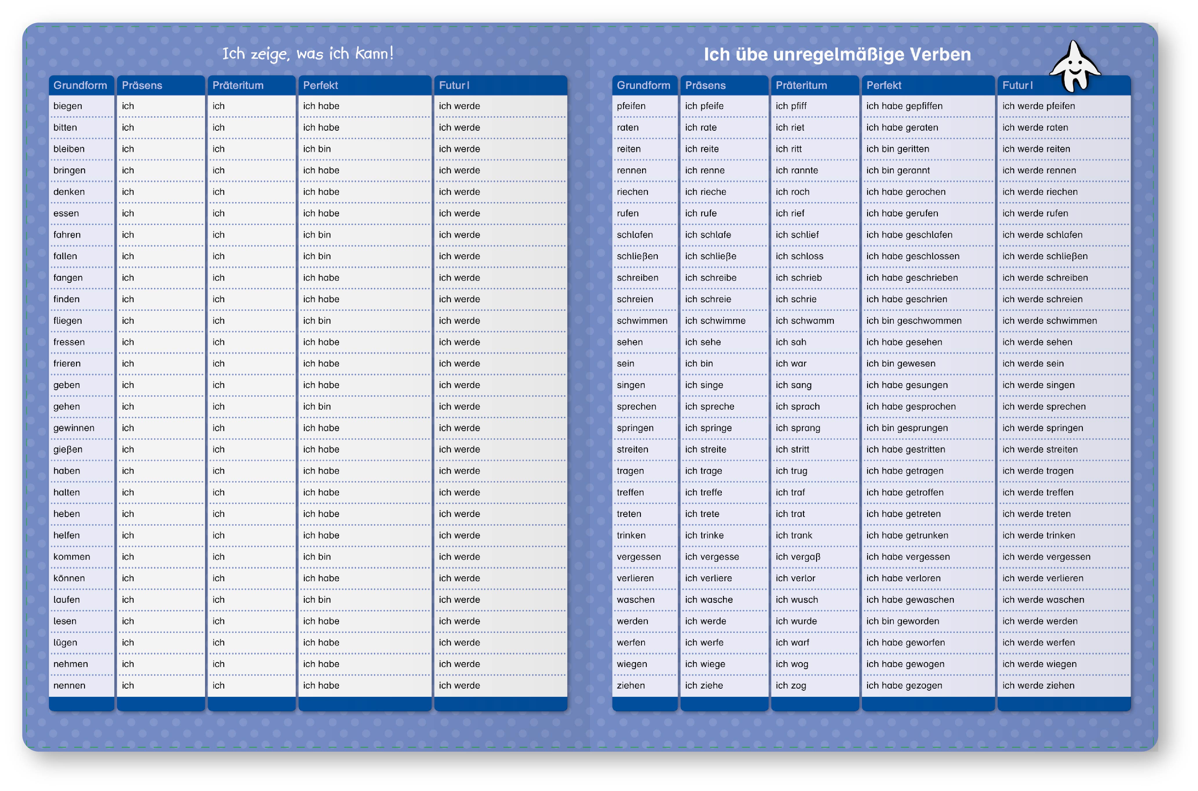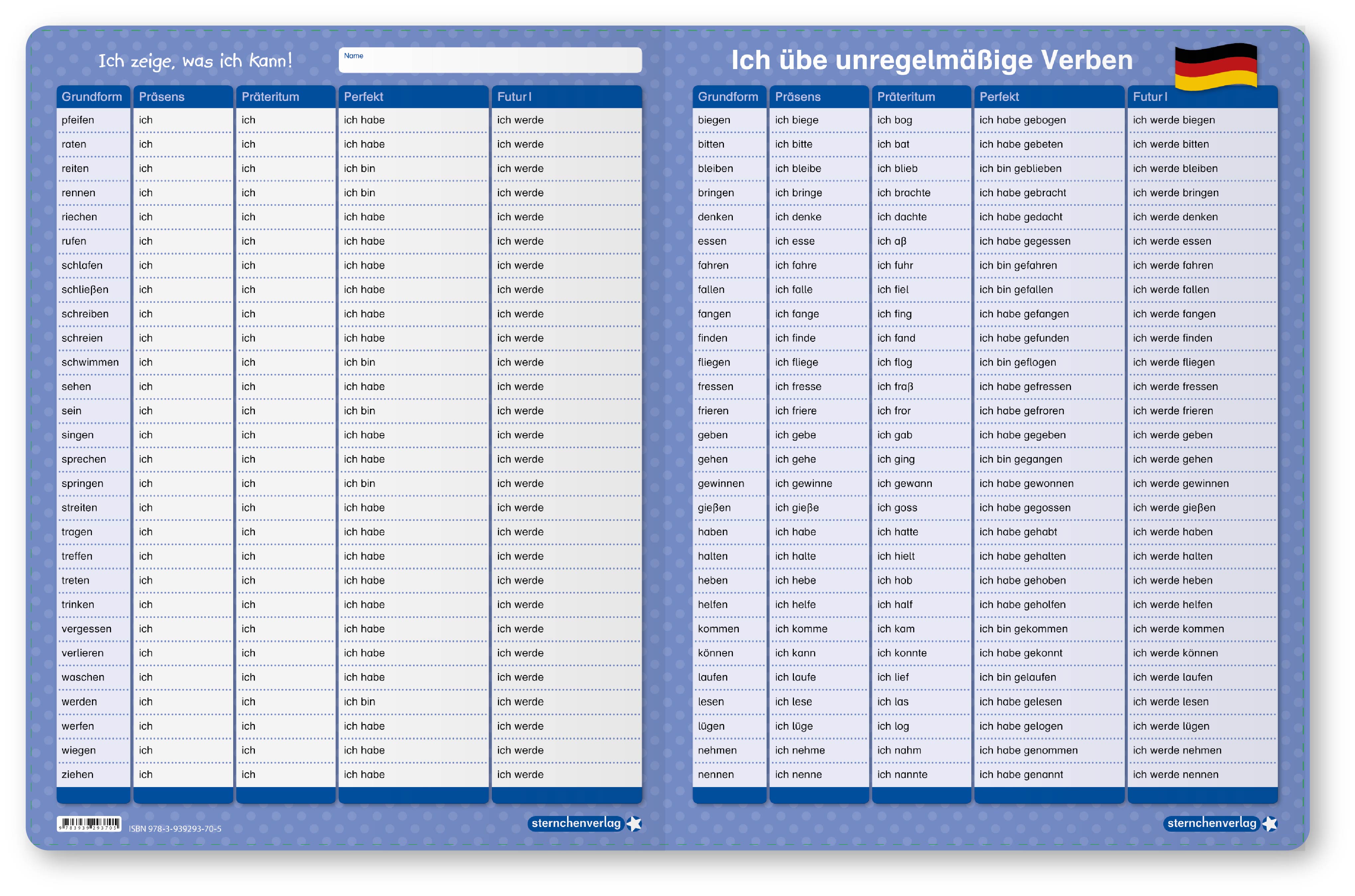 Ich übe unregelmäßige Verben - Zeitformen - 1 Doppelfeld mit Stift