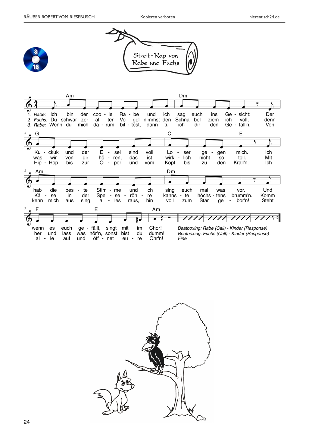 Das Geheimnis wird gelüftet: Aus einem Buch über Märchen und Fabeln entspringt ein Streit zwischen Rabe und Fuchs, der musikalisch ausgefochten wird.