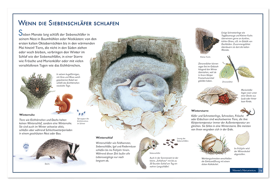 Wunderschön illustriert zeigen Wawra’s Naturtafeln eine Auswahl von bekannten Tier- und Pflanzenarten unserer Umgebung und geben in einer klaren und lebendigen Sprache einen fundierten wie spannenden Einblick in die Vielfalt der heimischen Natur. Für einen langjährigen Gebrauch lassen sie sich in A3-Folien laminieren. Neben den bisher erschienenen 36 Motiven sollen ab 2018 noch 24 weitere Tafeln folgen.
