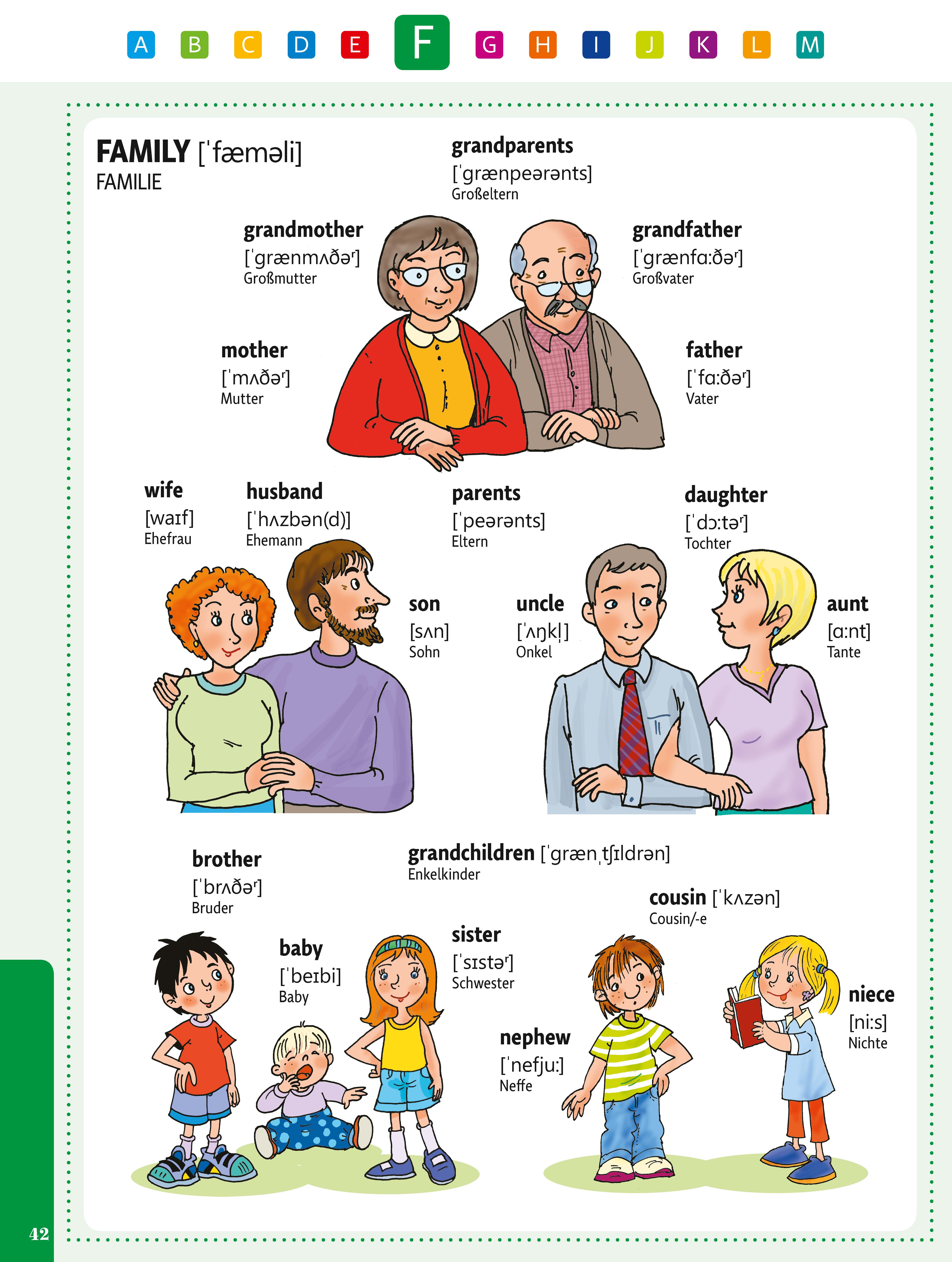 Kinder lernen Sprache wie ein Spiel - sie schauen, hören, nehmen das Gelernte wie ein Spielzeug in die Hand und laufen damit los!Dieses farbenfroh gestaltete Wörter-ABC zum Blättern, Staunen und Entdecken bietet Kindern ab 4 Jahren die perfekte Grundlage für die ersten Schritte mit der englischen Sprache: Die kunterbunten Illustrationen versprechen nicht nur Spaß beim Erlernen, sondern helfen auch dabei, sich die Wörter leichter einzuprägen. In Zwischenkapiteln stehen die wichtigsten Wörter zu unterschiedlichen Themenbereichen wie Familie, Kleidung, Essen, Sport, Tiere und vielem mehr beisammen. Jedes englische Wort ist außerdem mit leicht verständlicher Lautschrift versehen.