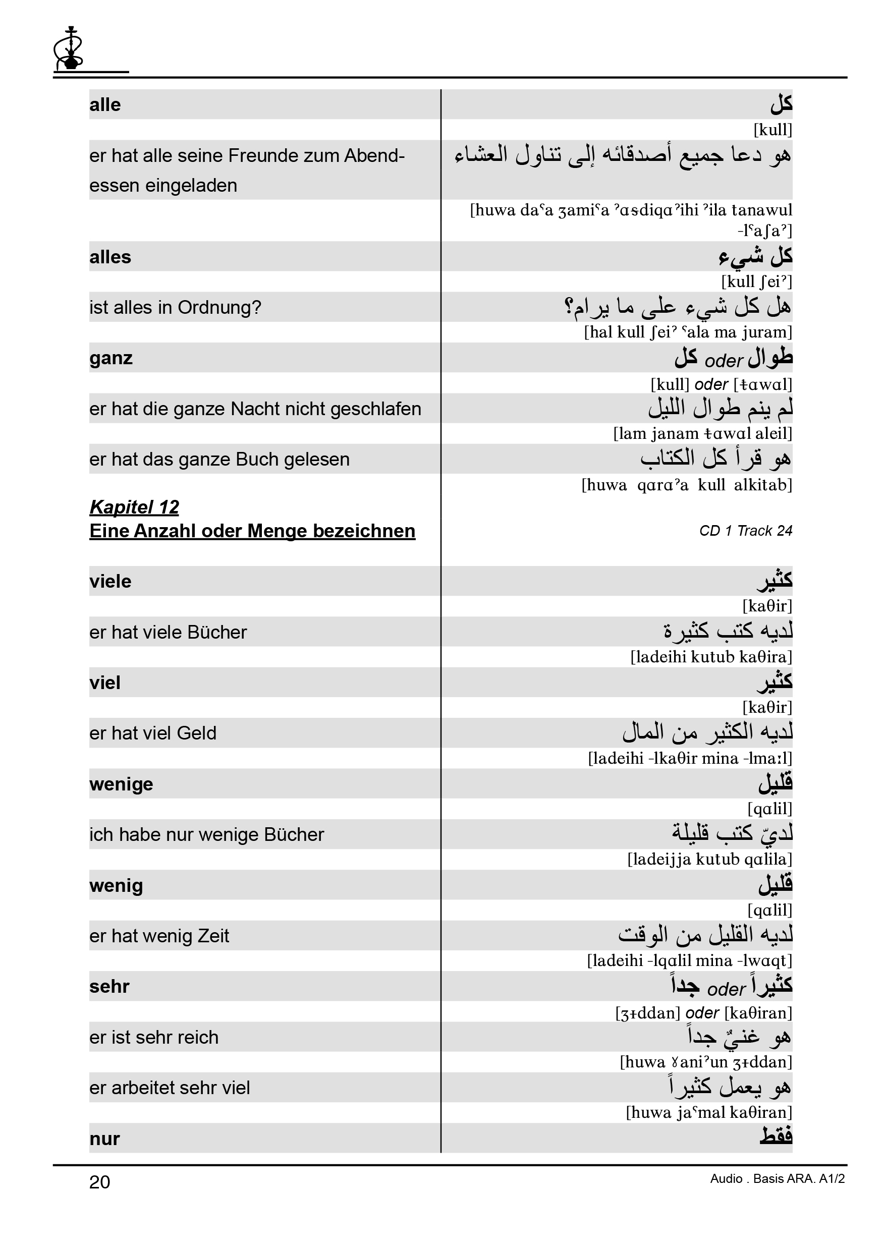 | Schlagworte | Arabisch • Audio-CD • Audiotrainer • Audiotrainer Basiswortschatz • Basiswortschatz • Fremdsprache • Hör-CD • Hören • Lernhilfe • MP3-Dateien • MP3-Files • Vokabeln • Wortschatz • Wortschatztrainer |
