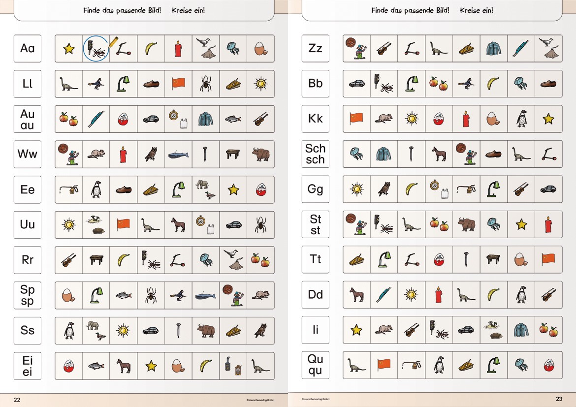 - Ideal für die Vorbereitung des Lesens und Schreibens - In diesem Sternchenheft "Übungen zu den Anlauten" beginnen die Kinder selbstständig, Anfangs-, Mit- und Endlaute einzelner Wörter herauszuhören. Mit den ersten motivierenden Zuordnungsaufgaben lernen die Kinder Schritt für Schritt die Anlaute kennen. Sie ordnen diese den Bildern zu und können bald erste Wörter zu Bildern lesen und schreiben. Das Arbeitsheft eignet sich auch prima zum Schriftspracherwerb für die DaZ- und Sprachförderung, da es mit Artikelfarben und Punkten versehen ist.Wie alle Sternchenhefte:- klarer Aufbau- selbsterklärend, arbeiten im eigenen Tempo- strukturiert und übersichtlich- höhe Förderung - von Lehrer*innen erprobt- kostengünstig Wahlweise können sie dazu auch mit der herausnehmbaren Anlauttabelle arbeiten.Durch das kostengünstige Angebot entfallen lästige Kopierarbeiten. 46 Seiten, A4,