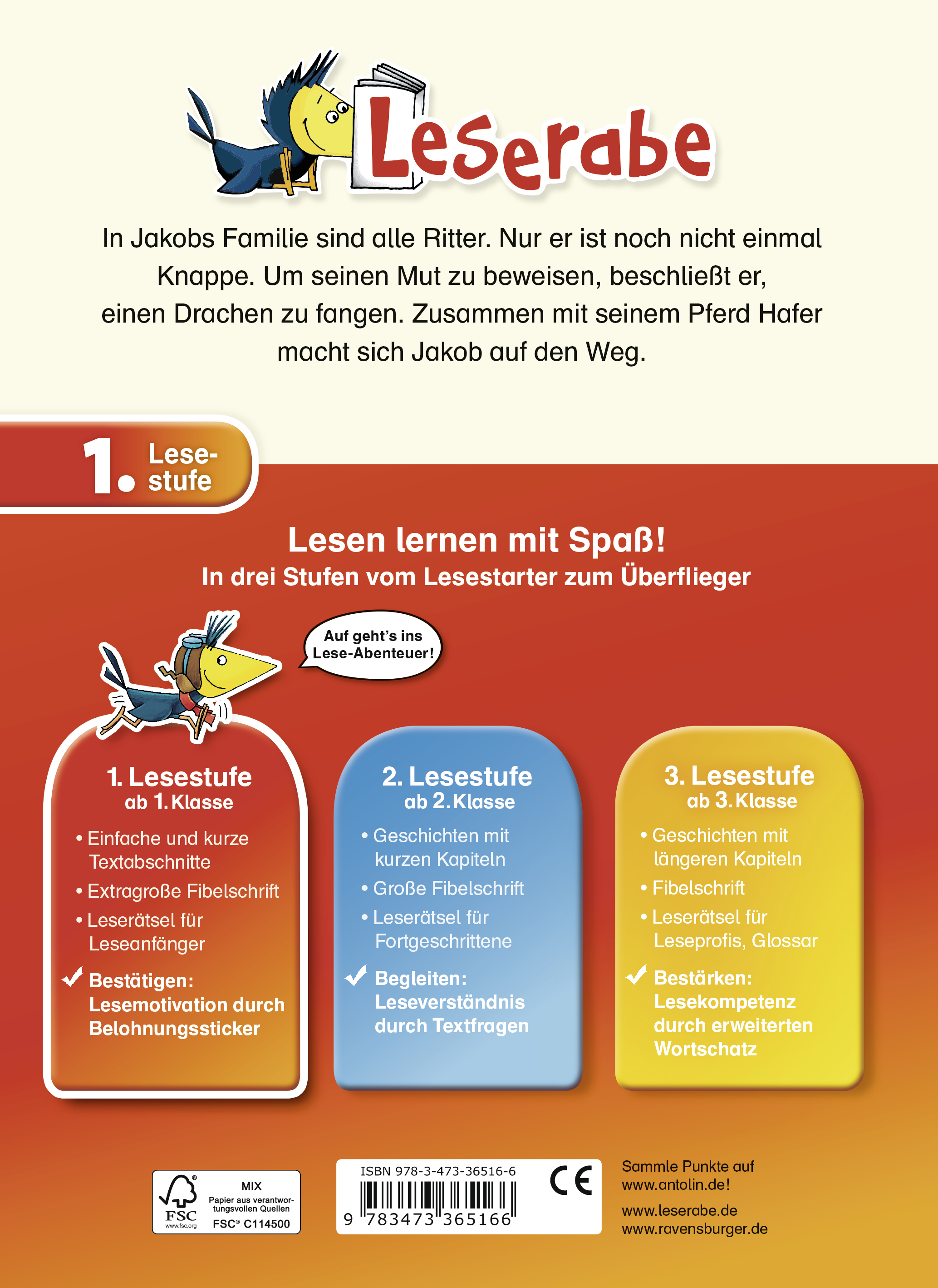 | Schlagworte | 1. Klasse • ab 6 Jahren • Abenteuer • Antolin • Antolin (1. Klasse) • Burg • Drache • Drachen (Fabelwesen); Kinder-/Jugendliteratur • Erstlesebuch • Erstleser • Freundschaft • Geschenk Kinder • Junge • Kinderbuch • Knappe • Leseanfänger • Leserabe • mit Stickern • Mut • Pferd • Ravensburger • Ritter • Ritter; Kinder-/Jugendliteratur • Schwester |