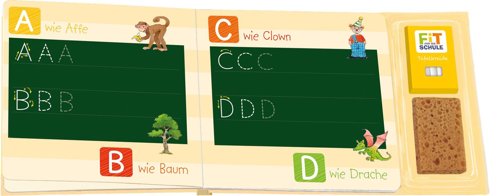 Mit diesem Tafelbuch lernst du im Handumdrehen die Buchstaben von A bis Z. Nimm eine Kreide, folge den Pfeilen und schreibe die Buchstaben nach. Mit dem Schwamm wischst du die Tafelflächen einfach wieder ab. So kannst du üben, sooft du möchtest: A wie Affe, B wie Baum, C wie Clown ...
