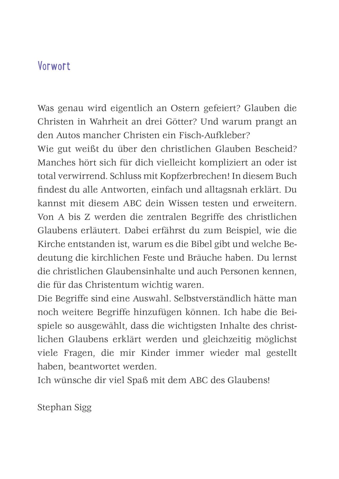 lt;p>Ein Kindersachbuch ab 8 Jahren zu den wichtigsten Fragen des Glaubens, in ABC-Form.