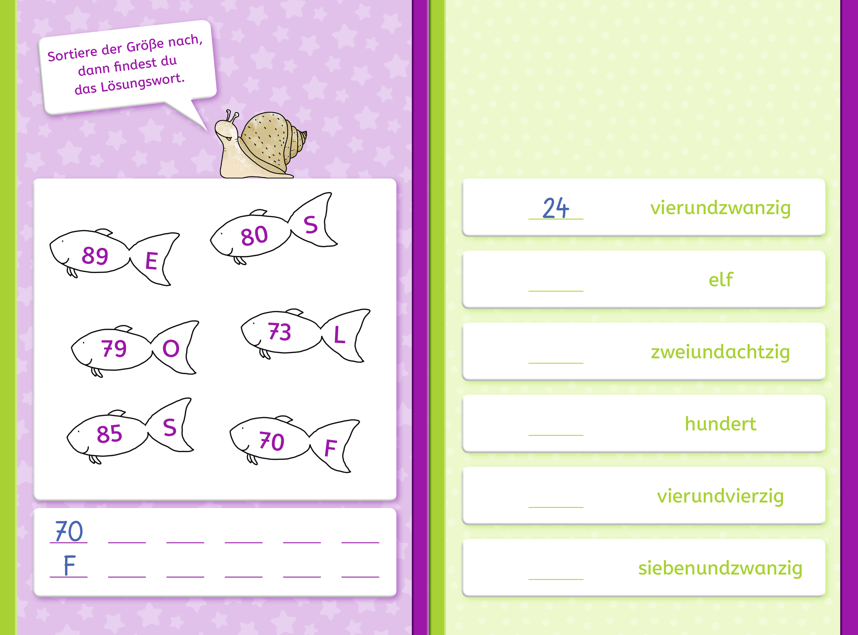 In diesem Block wird das Rechnen bis 100 geübt. Die kleinen Lernportionen sorgen für Motivation und schnellen Lernerfolg. Die spielerische Lösungskontrolle ist einfach und direkt.