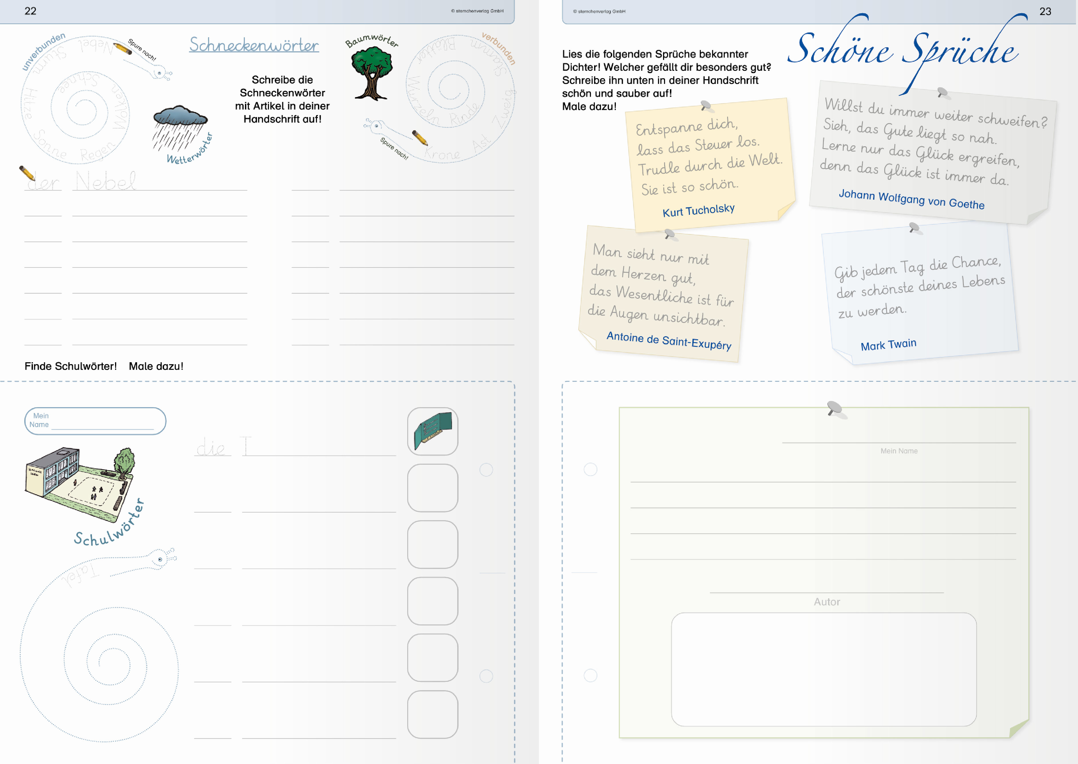Das Übungsheft zur Grundschrift mit weiterführenden Übungen zur Entwicklung einer individuellen Handschrift.Liebe Schülerin, lieber Schüler,in diesem Übungsheft sollst du schön schreiben und dir besonders viel Mühe mit deiner Handschrift geben. Besonders im unteren Teil der Seiten übst du deine eigene Handschrift. Du kannst den unteren Teil gestalten, heraustrennen, jemandem zeigen oder schenken, aufhängen, einrahmen oder einfach auch im Heft lassen. Du hast auch die Möglichkeit alle oder einzelne Blätter an der linken Seite neu zu heften. Dann hast du ein neues Heftchen mit Themen, die dir besonders gefallen haben und die du schön gestaltet hast.Erhältlich auch in den Versionen SAS, VA und LA!