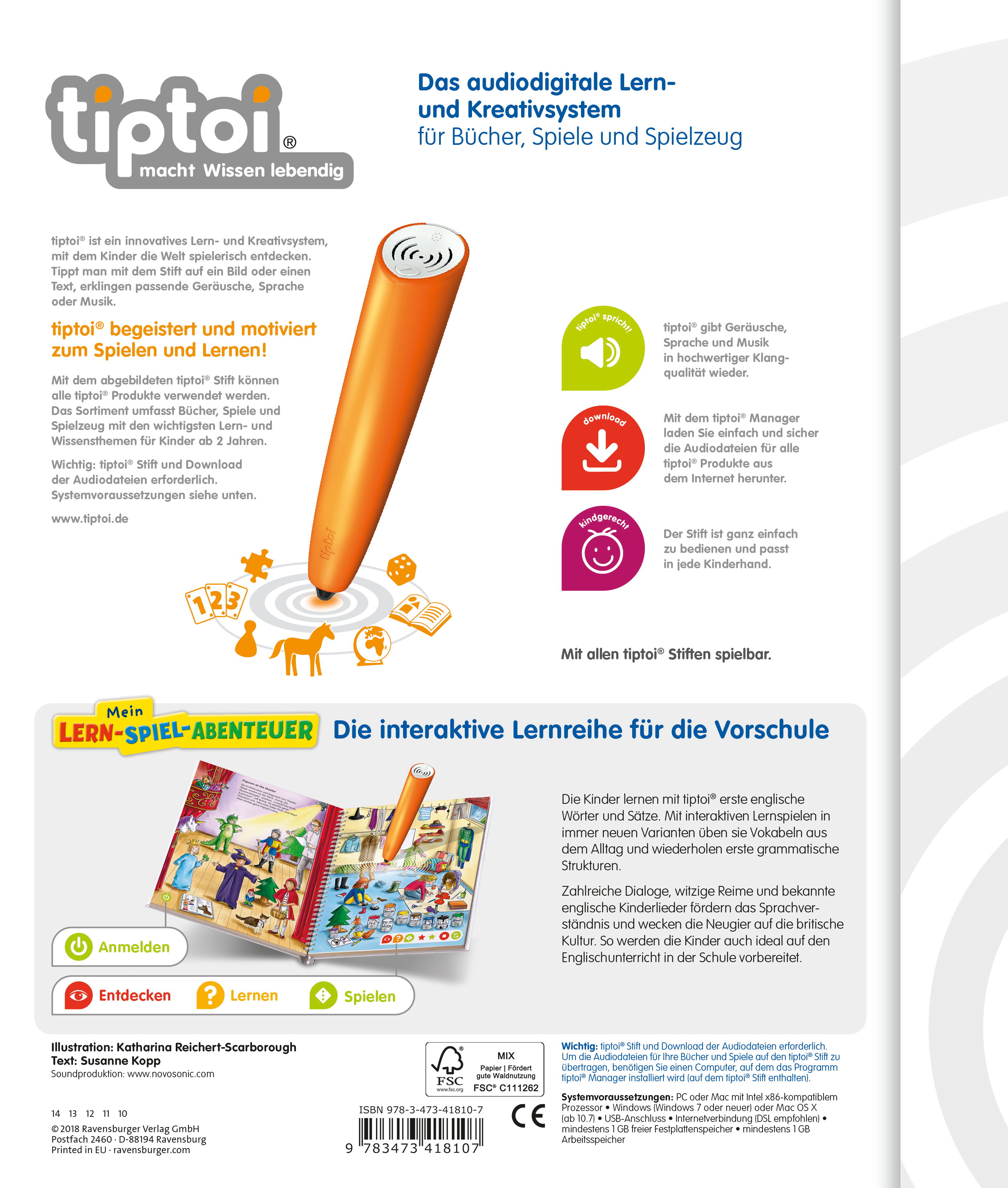 tiptoi-Stift nicht enthalten. Muss separat erworben werden.
