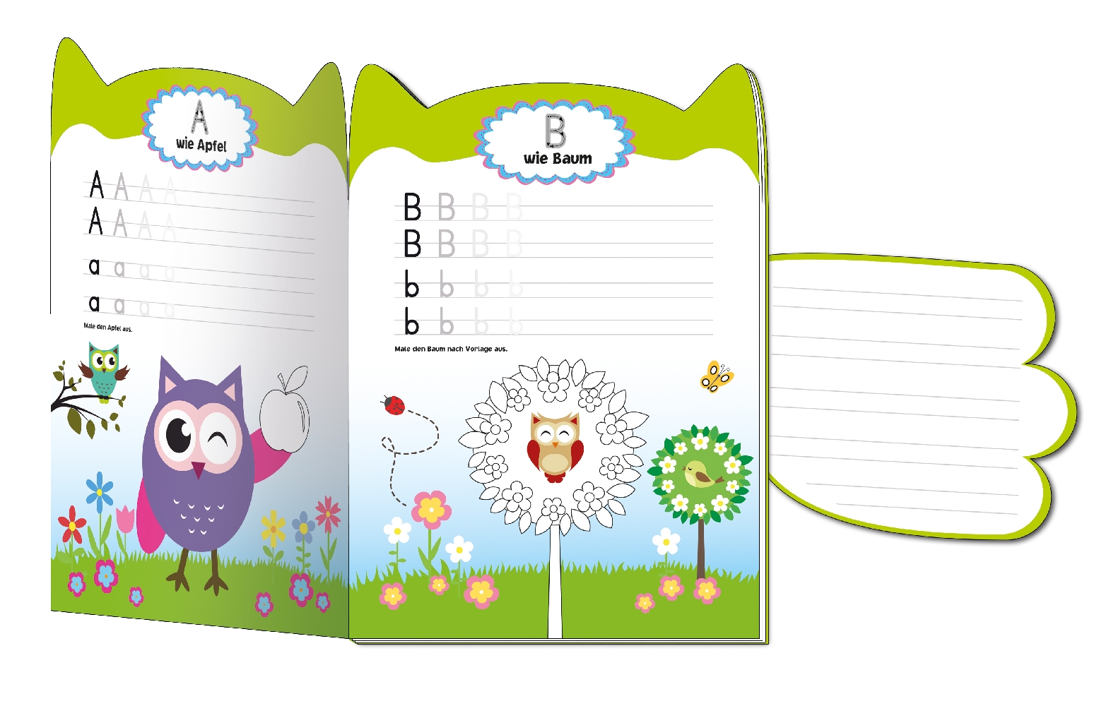 Mit den lustigen Eulen aus dem Eulenwald macht das Üben Spaß. Mit der Schreib-und-wisch-weg-Klappe können Schreibübungen mit einem klassischen Filzstift geschrieben und anschließend wieder weggewischt werden.