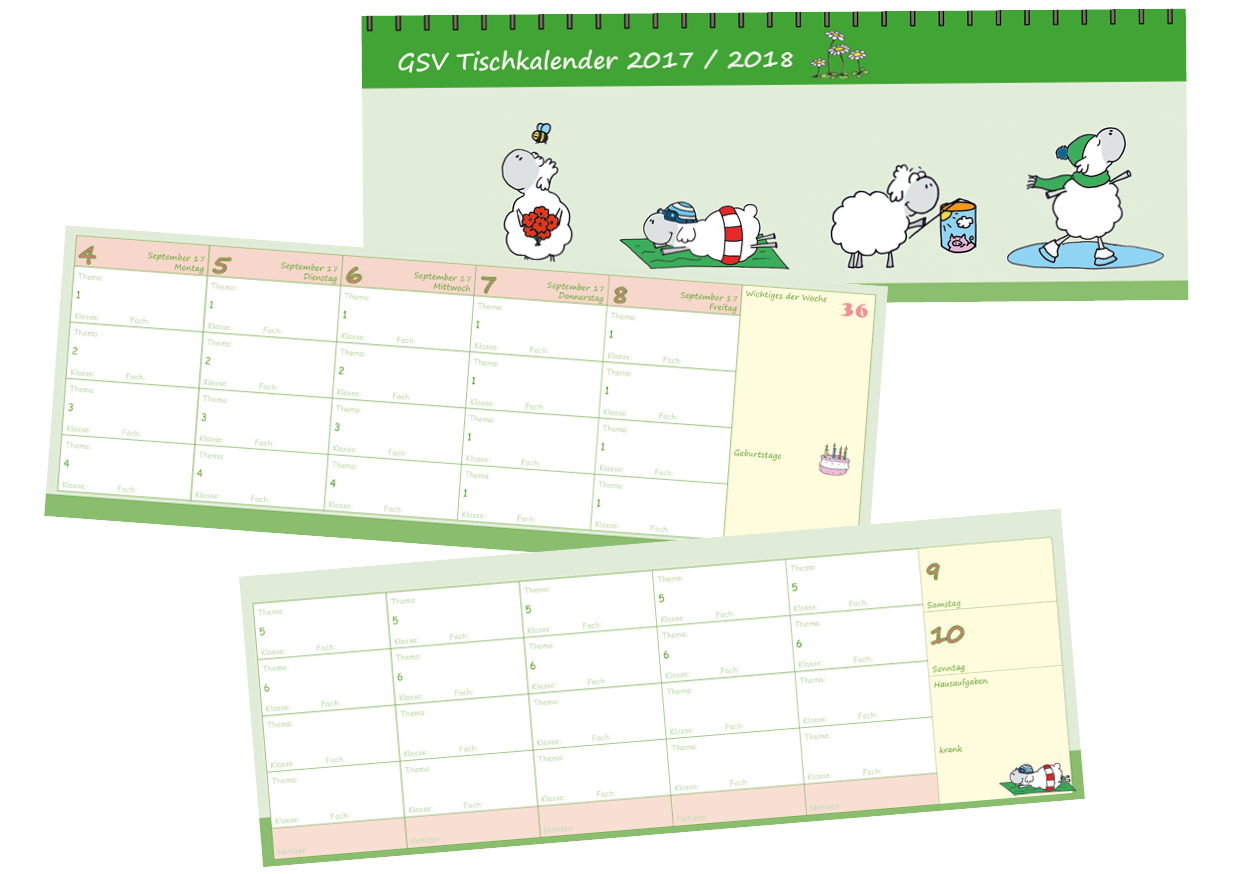 Der GSV Tischkalender mit Edgar, dem Schaf begleitet Sie fröhlich durch das Schuljahr.