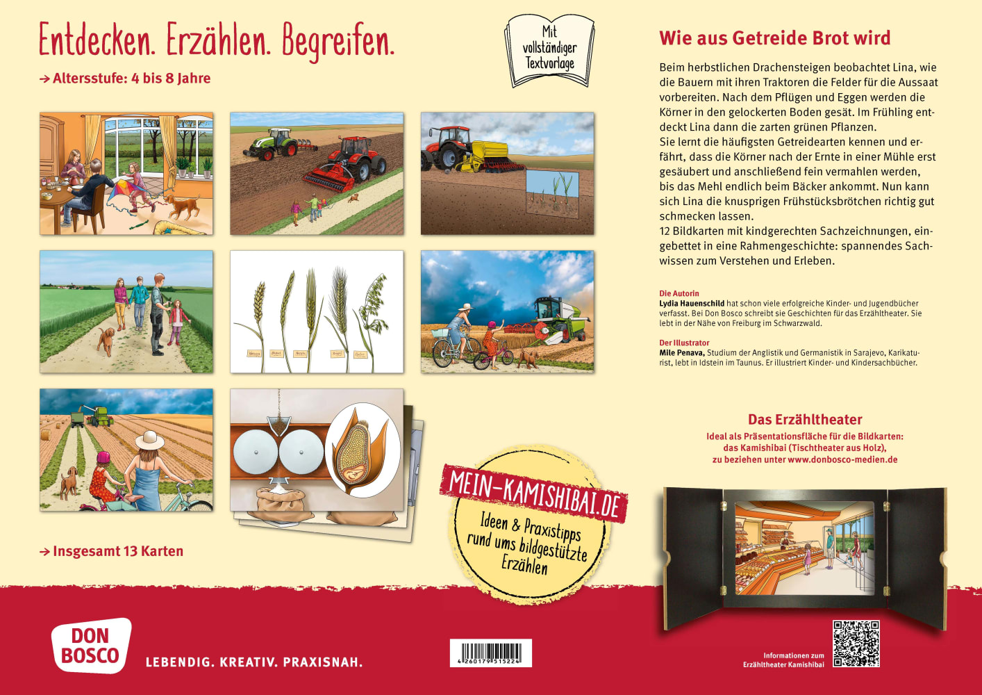 Was passiert vom Saatkorn bis zum fertigen Laib Brot? Dieses Kamishibai-Bildkartenset erklärt Kindern ab 4 Jahren den Weg eines Grundnahrungsmittels, das für viele mehr ist als nur Nahrung: Brot steht für Gemeinschaft, Kultur und Versorgung. Mit kindgerechten Bildern und einer lebendigen Geschichte lässt sich Sachwissen anschaulich und praxisnah vermitteln - ideal für Projektarbeit in Kita und Schule.