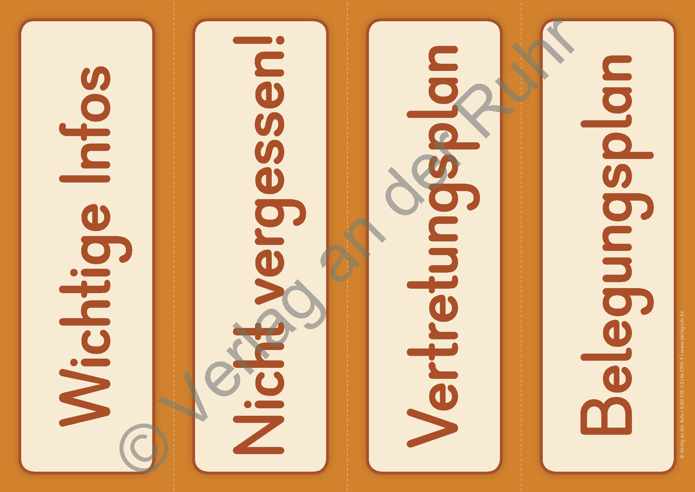 Organisationshilfen für Lehrer und Lehrerinnen an Grund- und Förderschulen, Klasse 1-4 +++ Ein Klassiker im Schulgebäude "Wo ist denn das Sekretariat?" oder im Lehrerzimmer: "Wer hat denn Aufsicht?" Dank dieser farbenfrohen Bildkarten, Pinnwand-Überschriften und Tür- und Hinweisschilder werden alle relevanten Informationen für Eltern, Kinder und Ihr Kollegium auf einen Blick ersichtlich. Die klar formulierten Schilder verbessern den Informationsfluss und bringen im Handumdrehen Ordnung ins Schulgebäude und Lehrerzimmer. So strukturieren schön gestaltete Überschriften Ihre Pinnwände und die pädagogischen Sinnsprüche sorgen für eine angenehme Arbeitsatmosphäre. Wegweiser und Türschilder bieten zudem eine perfekte Orientierung für Ihr Schulgebäude: Bildkarten zum Sekretariat, zur Bücherei u.v.m. erleichtern Externen das Zurechtfinden. Mit diesen Karten können Sie künftig auf einige Klassiker verzichten!