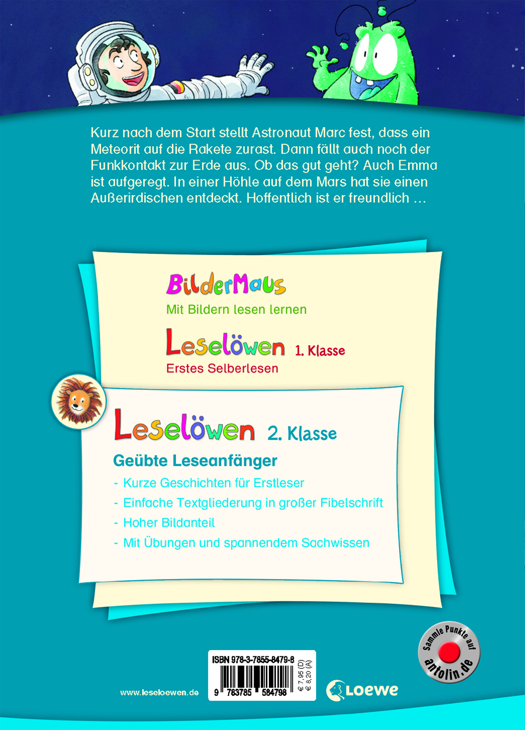 Kurz nach dem Start stellt Astronaut Marc fest, dass ein Meteorit auf die Rakete zurast. Dann fällt auch noch der Funkkontakt zur Erde aus. Ob das gut geht? Auch Emma ist aufgeregt. In einer Höhle auf dem Mars hat sie einen Außerirdischen entdeckt. Hoffentlich ist er freundlich ...