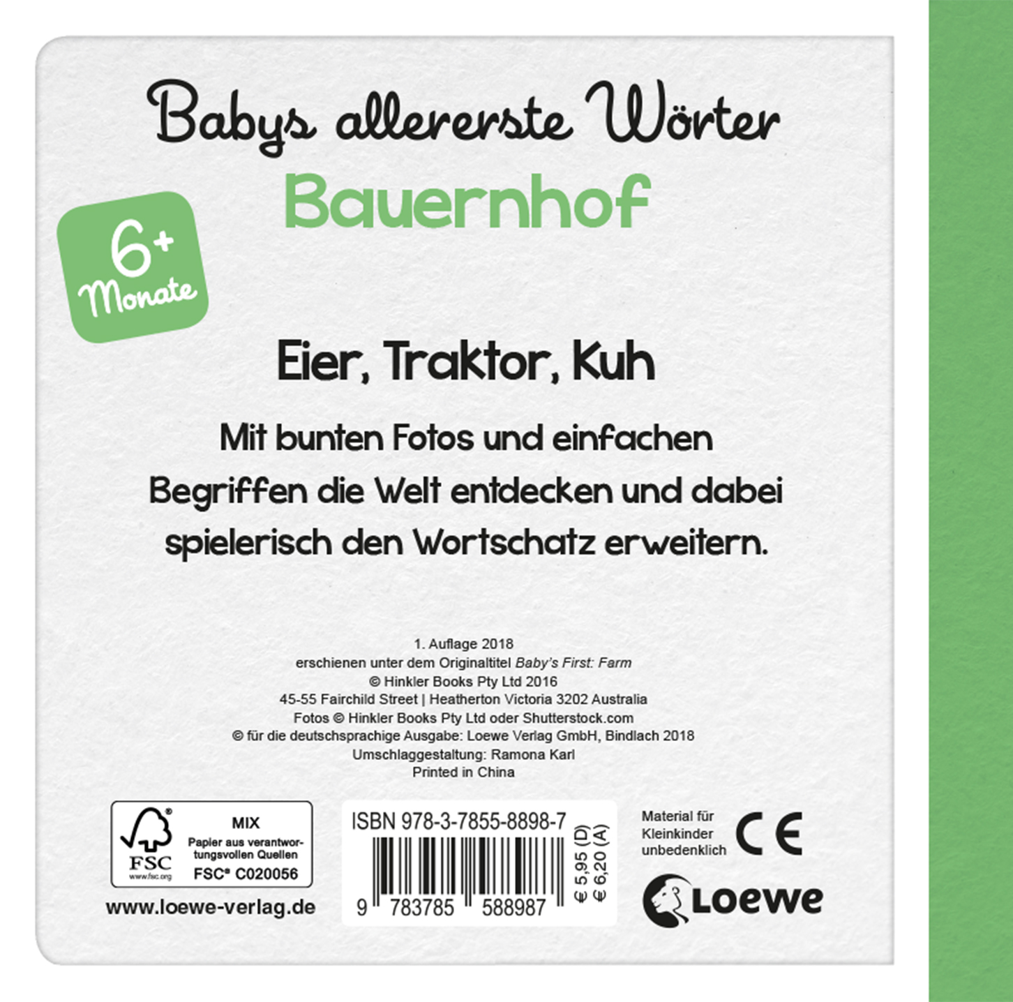 In diesem Bilderbuch warten viele bunte Fotos und einfache Begriffe rund um das Thema Bauernhof auf die Babys. Die Kleinsten erkunden auf diese Weise ihr Umfeld und erweitern dabei wie von selbst ihren Wortschatz.