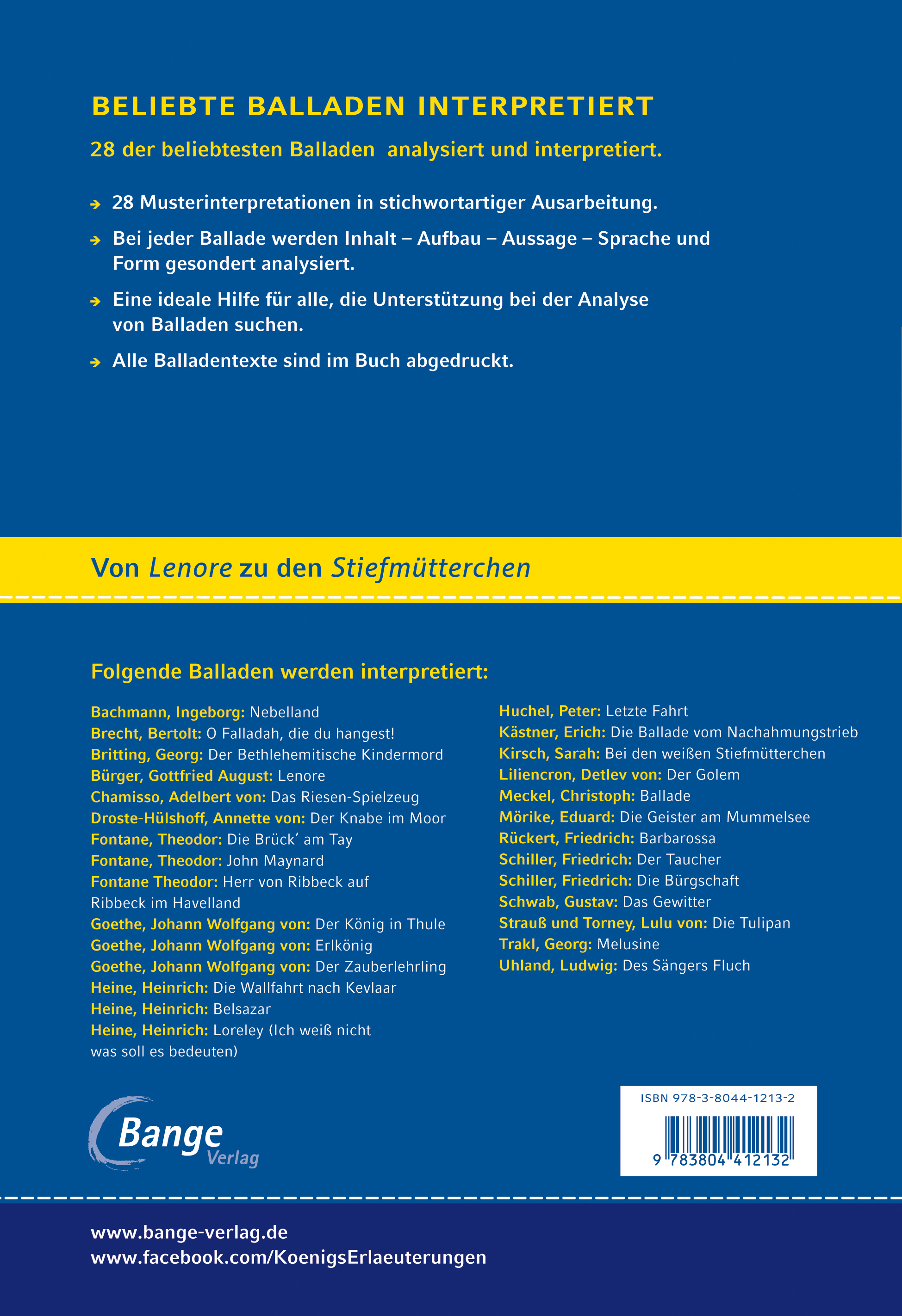 - Bei jeder Ballade werden Inhalt, Aufbau, Aussage, Sprache und Form gesondert analysiert