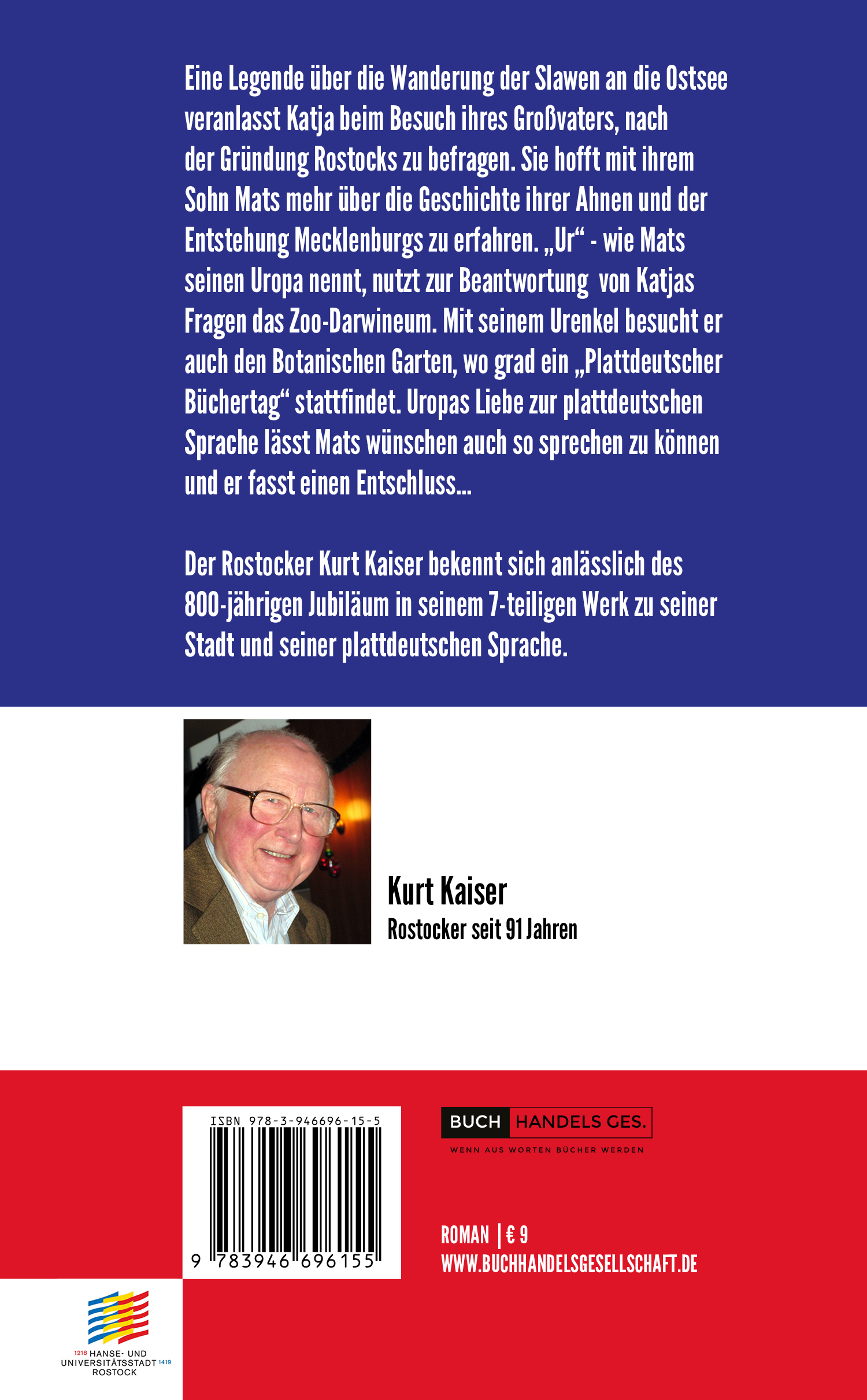 Sie lesen richtig: Niederdeutsch. Der Rostocker Kurt Kaiser bekennt sich in seinem 91. Lebensjahr anlässlich des 800-jährigen Jubiläum der Hansestadt Rostock in seinem 7-teiligen Werk zu seiner Stadt und seiner plattdeutschen Sprache.