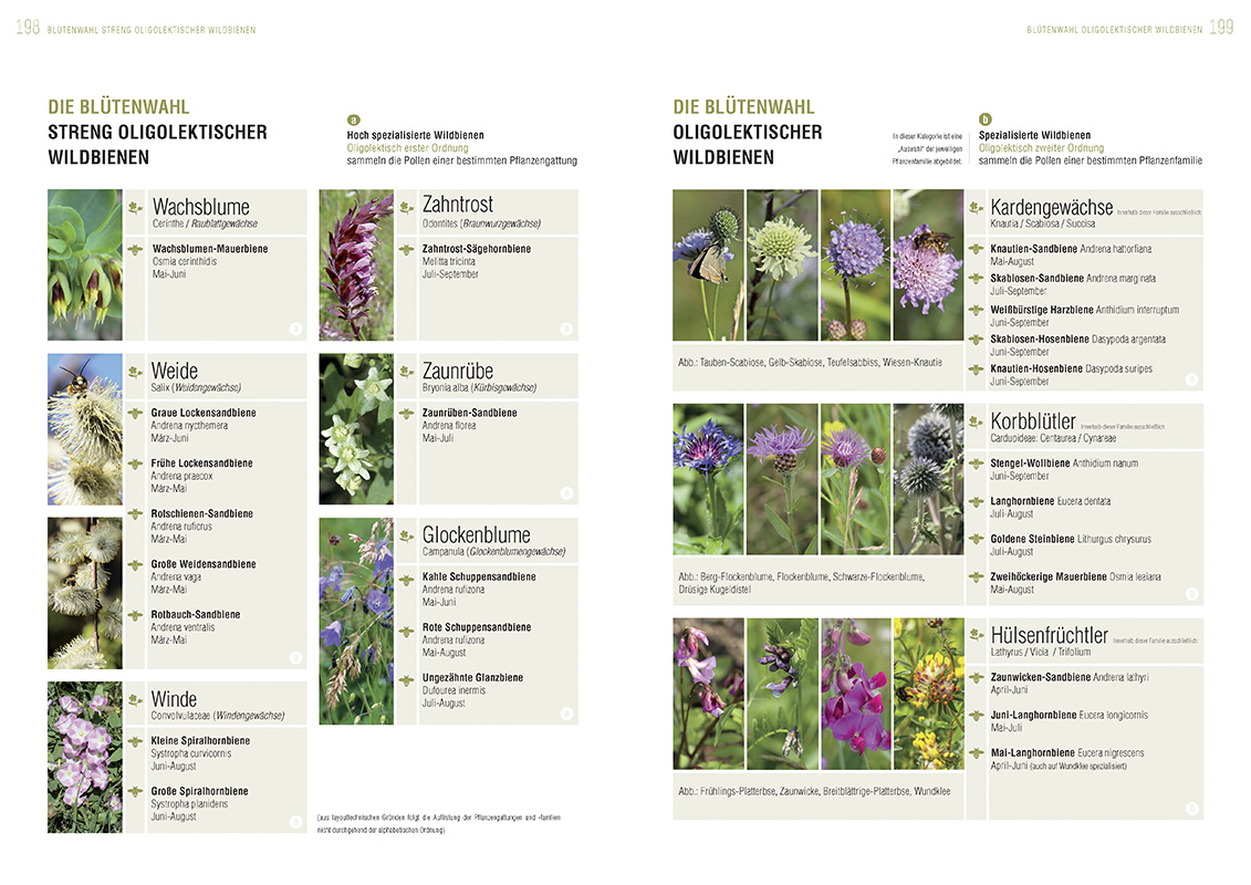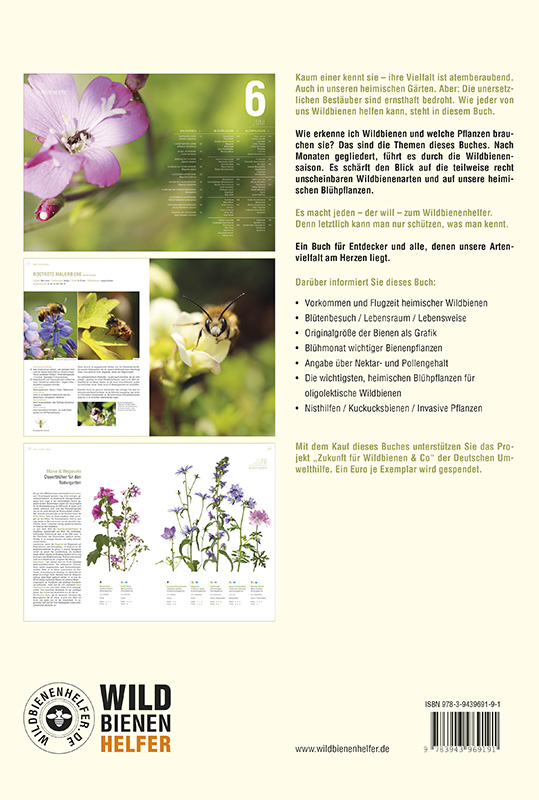 Es führt, nach Monaten gegliedert, durch die Wildbienensaison und zeigt anschaulich, welche Pflanzen Nahrung bieten und welche Wildbienen unterwegs sind. Jeder, der einen Garten, Balkon oder andere Pflanzmöglichkeiten hat, kann gezielt das Nahrungsangebot für die bedrohten Insekten verbessern. Das Buch schärft den Blick auf die teilweise recht unscheinbaren Wildbienenarten und auf unsere heimischen Blühpflanzen.